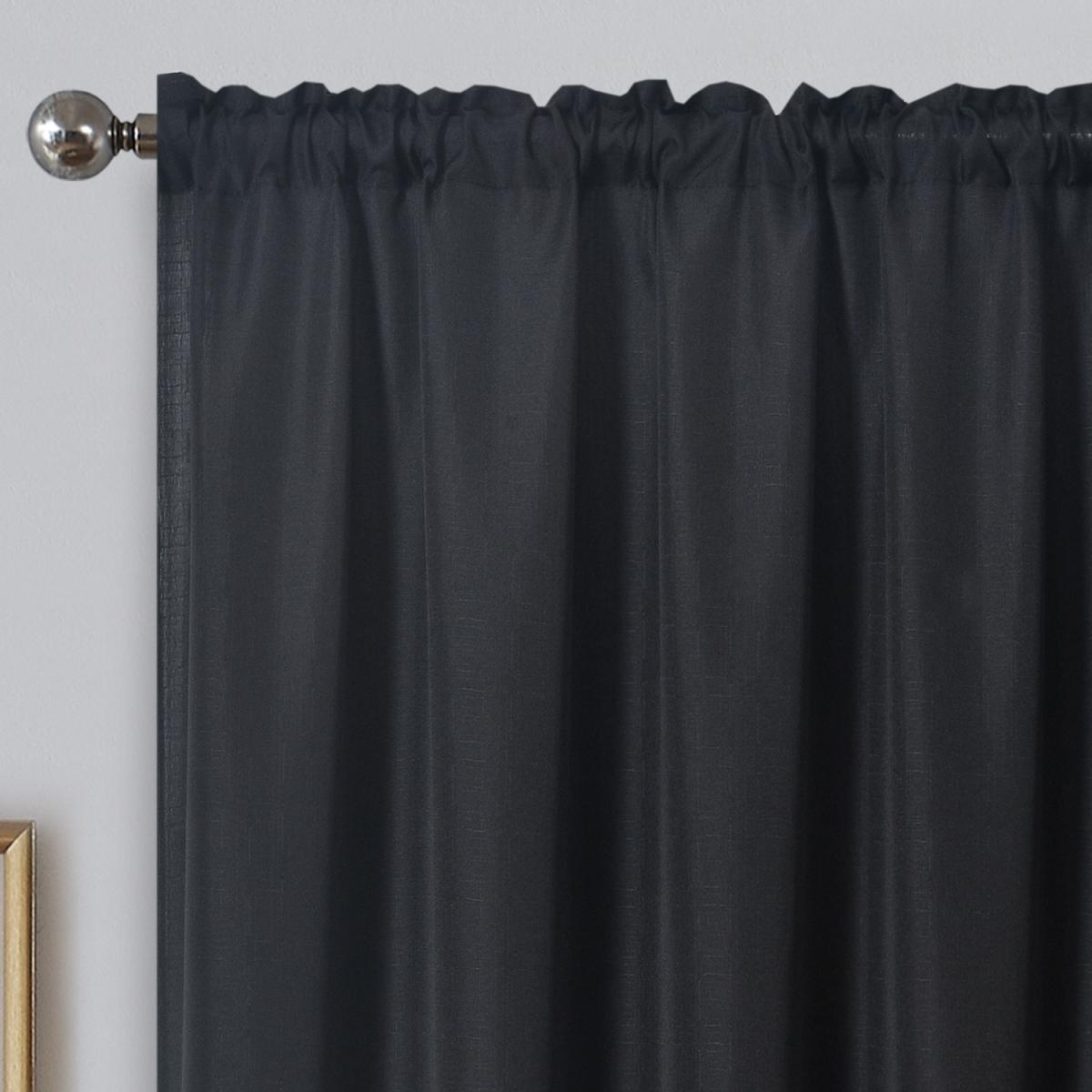 Linen Look Black Voile Panel Curtain - Black / 1kg