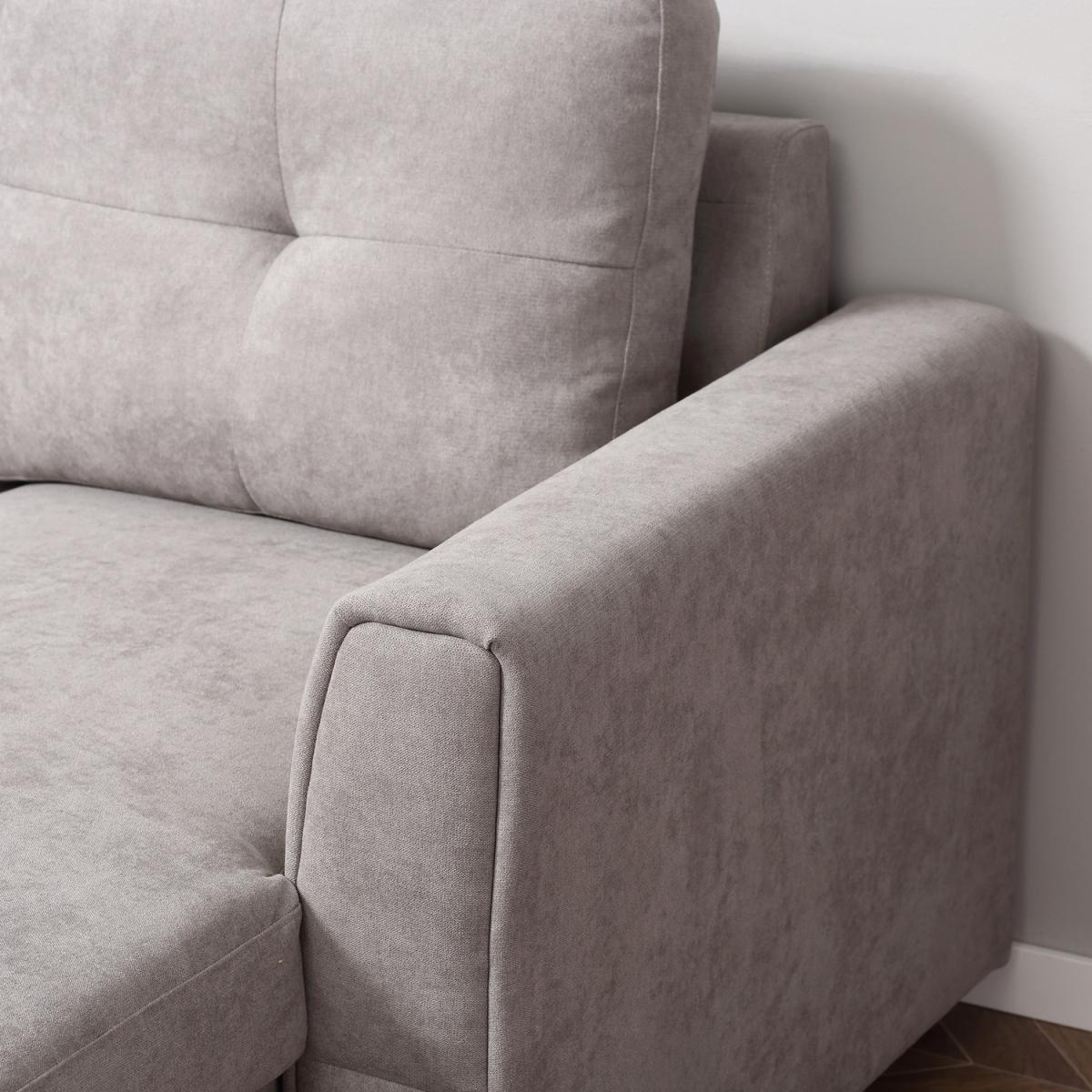 Linen-Look L-Shaped Sofa Bed - Grey