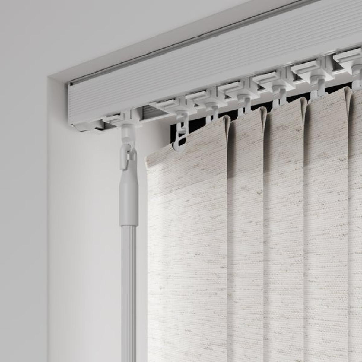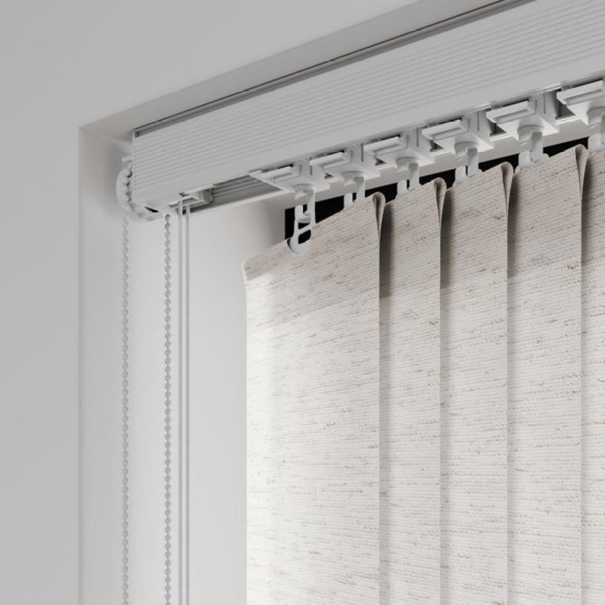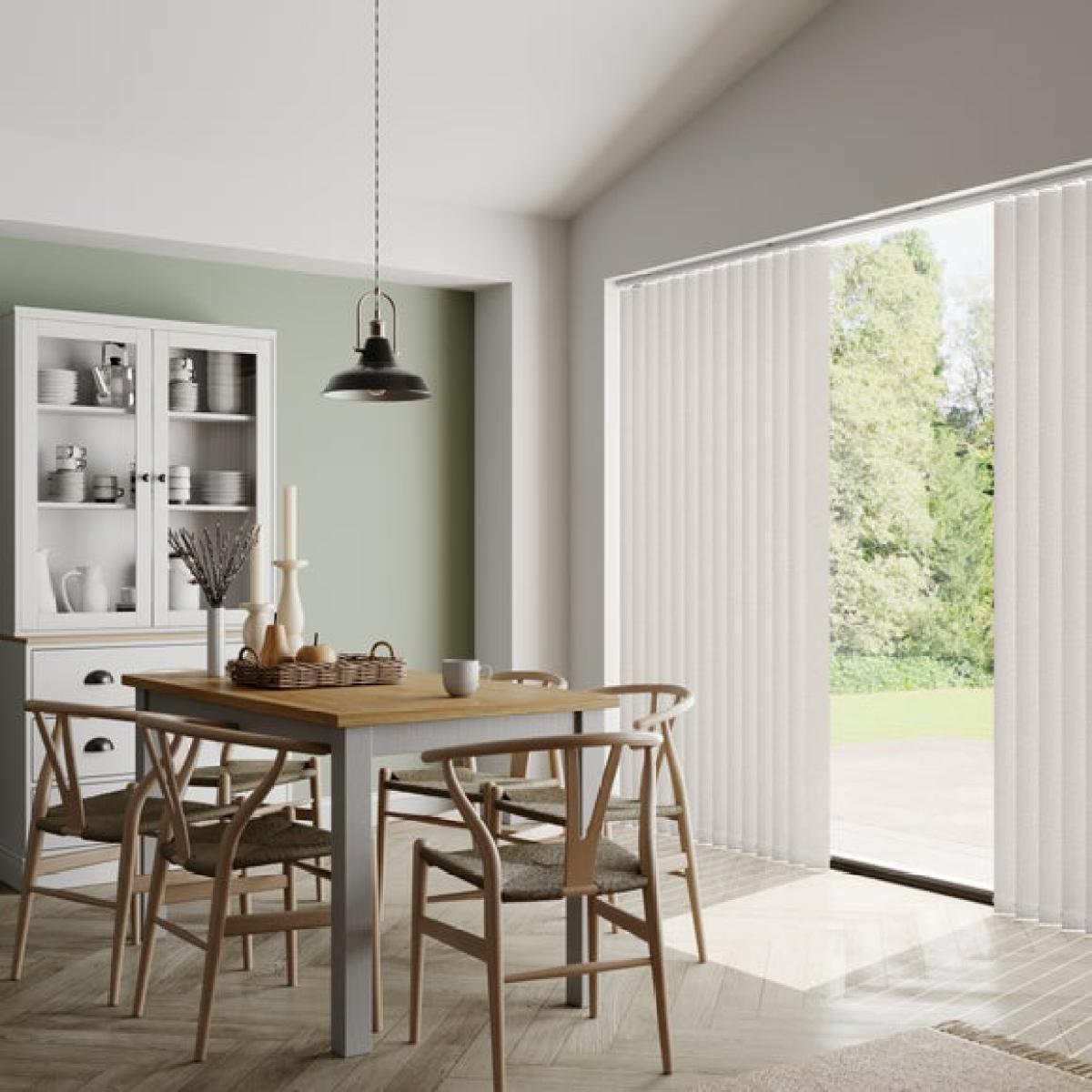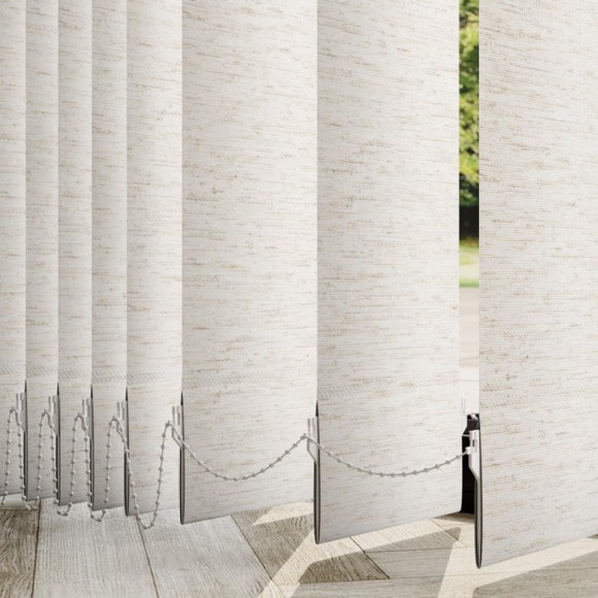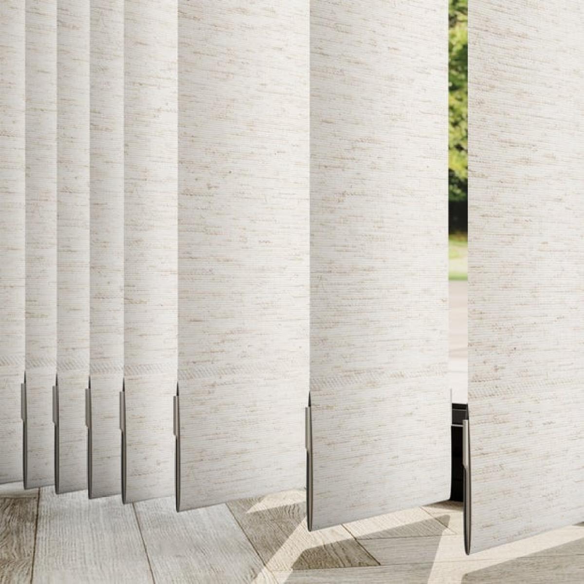 * Choose your fabric and colour * Select your fitting type, bracket type, and control type * Pick your stack side and bottom weight For a brilliant, timeless style, opt for the Linen fabric as the finishing touch in your home. The Linen fabric is versatile and pairs well within both traditional and contemporary interiors. Please note that there will be batch differences so the sample may vary slightly to the product. There is also a 0.5mm tolerance for the product.**Choosing your fitting type:** * Inside the recess: this gives a tidy, snug finish as it's made to fit your window exactly. * Outside the recess: this option is great if you want more light to enter your room when the blinds are open. **Choosing your bracket type:** * Top fix: fitted into the top of the window recess or ceiling for a neat finish. Recommended for inside recess. * Face fix: fitted to the wall above the window, outside of the recess so your blind will cover the entire window. Recommended for outside recess. Available in standard 89mm or longer 127mm lengths. **Choosing your control type:** * Wand: the wand control pulls your blind to your desired position over your window and also tilts the blind slats with a twist. This option is perfect for homes with pets or children as it hangs out of reach. * Chain: the chain control allows you to pull the chain to tilt the blind slats and use the draw cord to open and close. The standard length of the chain is 1m. Please read our [Blinds Safety Guide](https://www.dunelm.com/info/buying-guides/blinds-safety-guidance) for more information on how to make your chain child and pet friendly. **Choosing your stack side:** * Left stack: your blind slats will stack to the left of your window or door. * Right stack: your blind slats will stack to the right of your window or door. * Split stack: your vertical blind will open from the centre, leaving a stack of blind slats on both the left and right of your window or door. **Choosing your bottom weight:** * Chained weights: each blind slat is weighted and includes a stabilising chain at the bottom which gives a classic feel and is great for drafty days. * Chainless weights: each blind slat is weighted at the bottom removing the need for a stabilising chain. This option is more pet and child friendly. **Need help deciding or measuring? **Book a free appointment with one of our consultants!