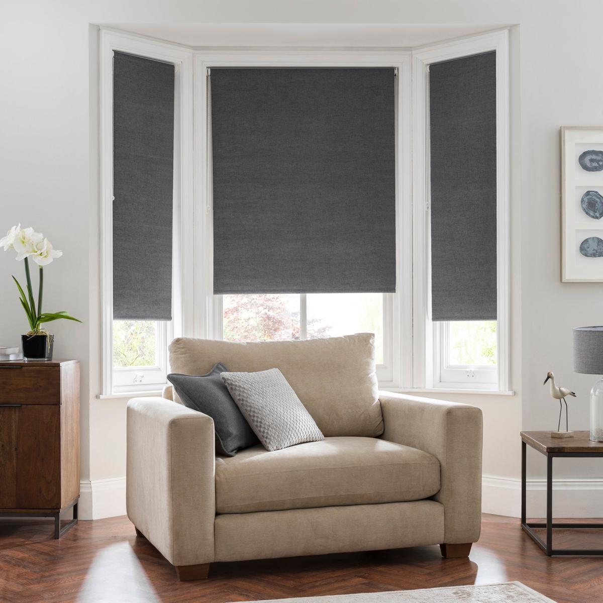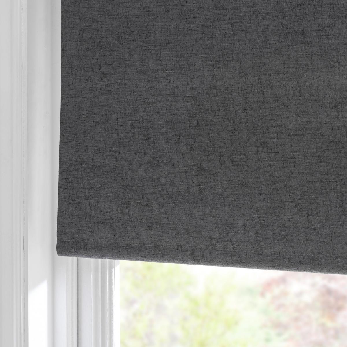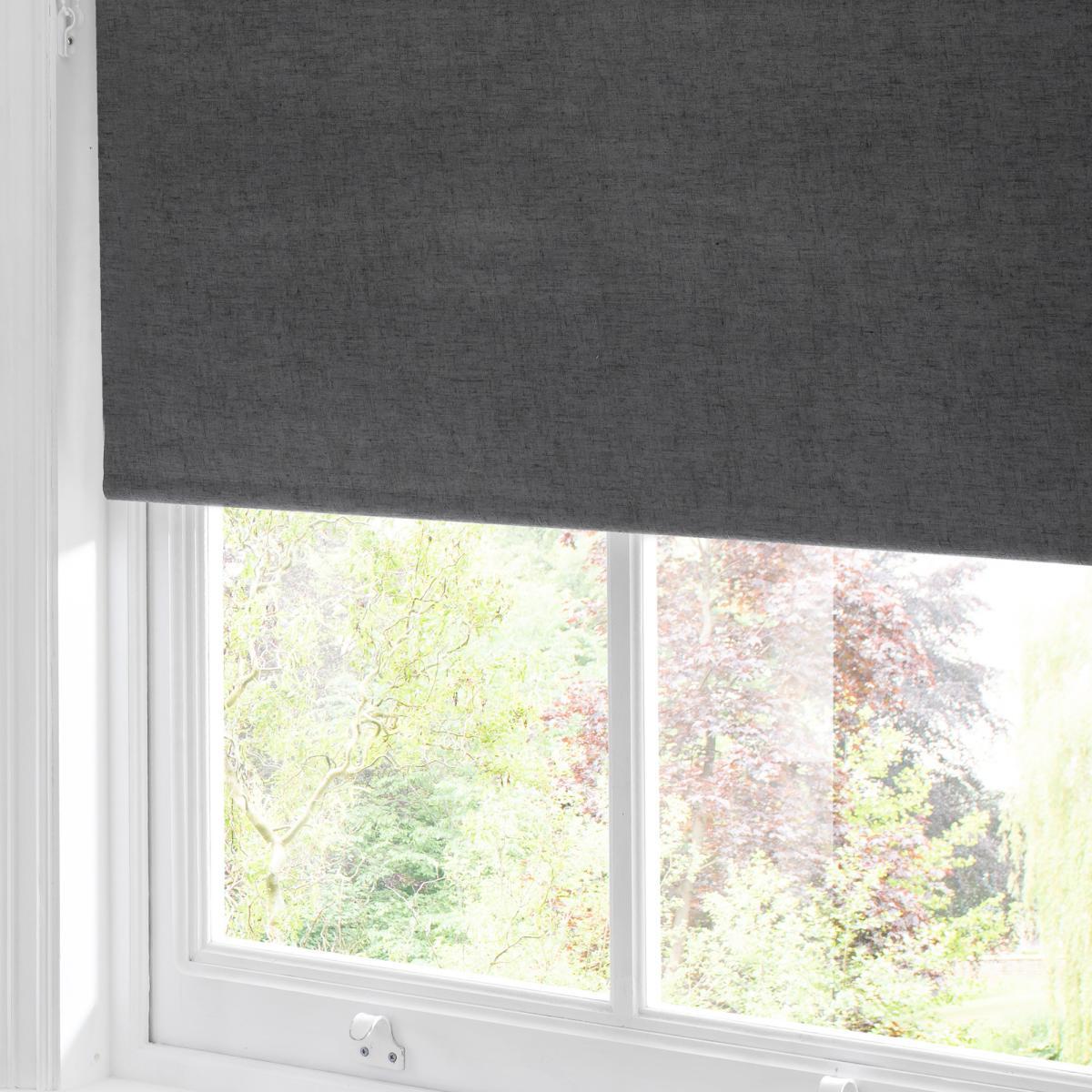Designed in a modern charcoal grey, this stylish roller blind is equipped with a blackout coating to prevent unwanted external light from entering your home and to improve privacy. This blind is crated from a linen blend for a natural finish and is available in a variety of sizes to suit your requirements. Supplied with all fixings included. This blind can be cut down to suit your requirements. Please note that blinds cannot be returned once altered. Please note: The width stated is for the fabric only, please allow an extra 3. 2cm for the brackets and mechanism. Always check specific fitting instructions and check measurements for your blind once purchased before cutting to size. To see instructions, please click. Here.