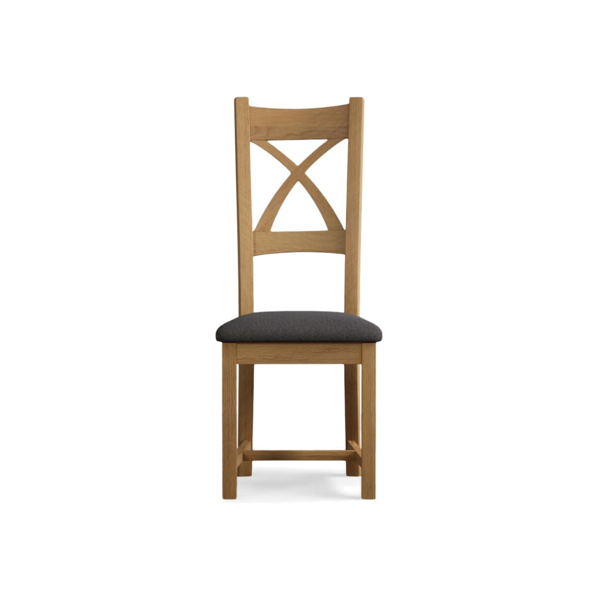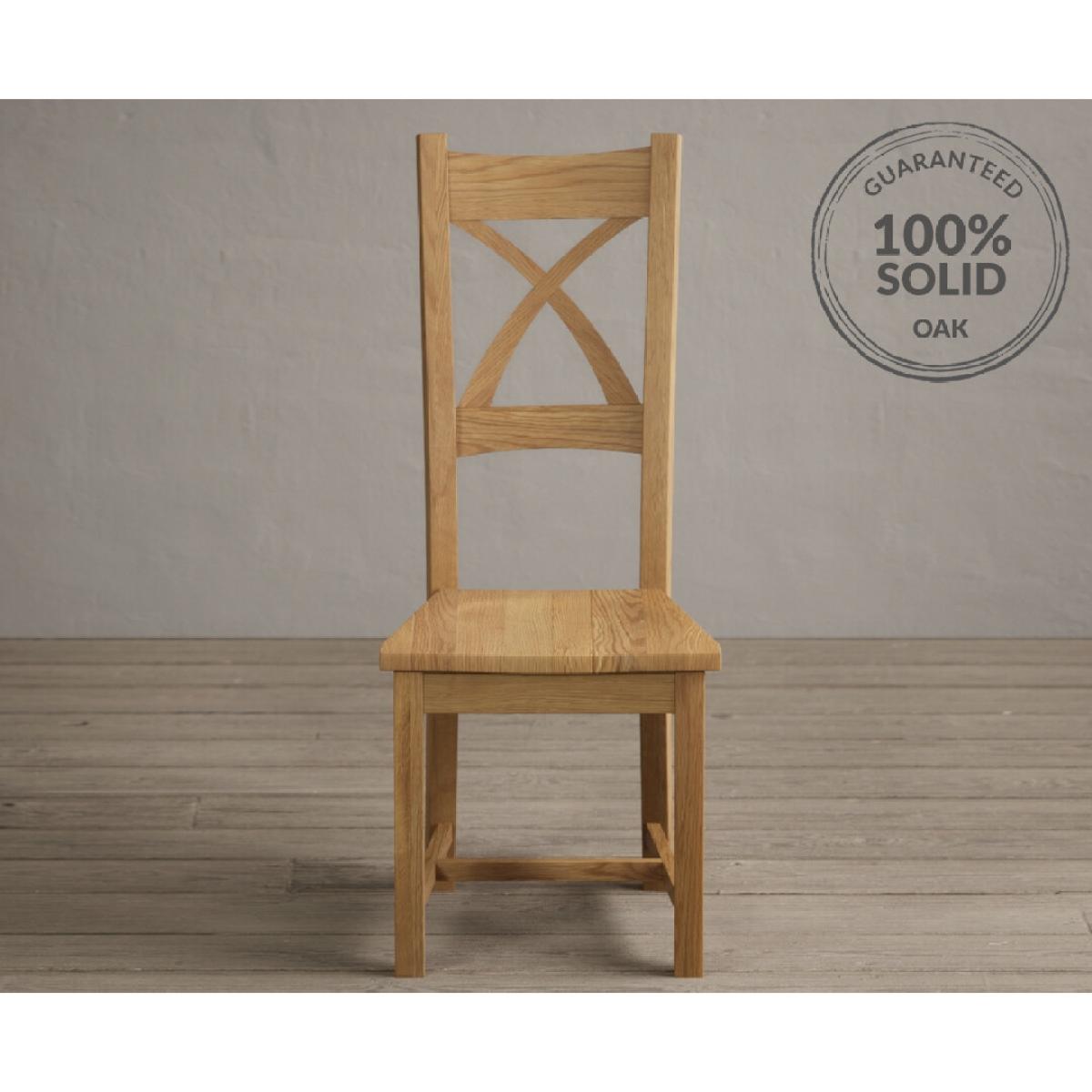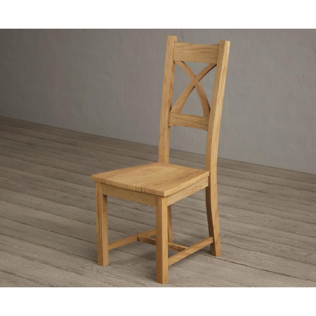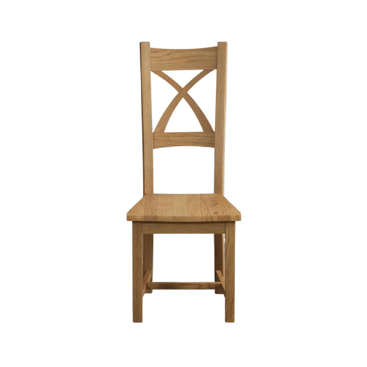 The Natural Solid Oak X Back Dining Chairs with Oak Seat Pad are solid oak dining chairs with a natural finish, complete with an oak seat pad.