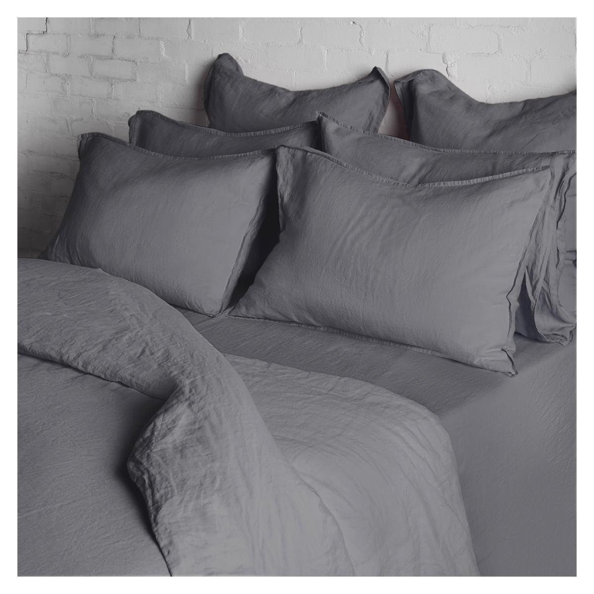 Less is more with this collection of mineral-toned, muted slate bed linen - perfect for adding depth to a neutral scheme. Woven from 100% flax-fibre yarn grown in Europe, this pure linen bedding was pre-washed in supremely soft water to award it a beautifully tactile finish and a uniquely relaxed aesthetic. The Conran Shop’s pure linen bedding collection is entirely machine washable at 40°C and suitable for tumble drying.