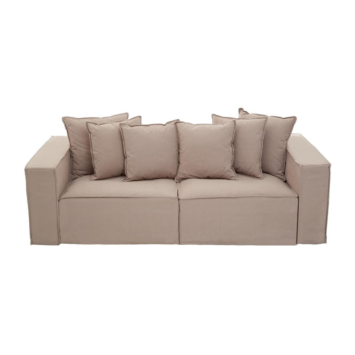 Casually luxe, this linen 3 seater sofa is both spacious and comfy. With envelope finishes and squishy seat cushions, this piece is sure to complement any boho inspired living room. Product details Seats 3. Medium comfort Deep seat. High quality linen blend upholstery Foam fillingsFS. C Wood Frame Envelope finished seams. Tuxedo arms (arm and back are same height)Hidden feet (plastic)Removable cushion covers. Scatterback cushions included (x6)BS 5852 Certified Assembly required (recommended two persons)Recommended dry clean only, avoid exposure to direct sunlight to ensure colour remains as new. Weight capacity 250 kg Arm height (floor to arm) 85 cm. Back height (seat to top of back) 85 cm. Product Composition - Linen, wood, Foam. Product Dimensions - 100 cm x 220 cm x 85 cm , Weight - 49 KGPackage Dimensions - 230 cm x 102 cm x 50 cm, Weight 57 kg. This product will be dispatched by one of our trusted suppliers. You’ll be contacted by their selected courier about your delivery. PREMI01