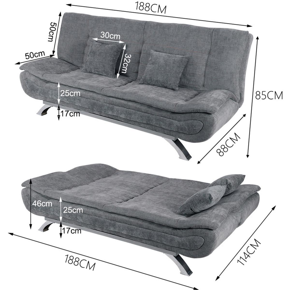 Transform your living space with our Grey 2-Seater Sofa Bed with Cushions, the perfect blend of style and practicality. Crafted with a heavy-duty metal frame featuring modern form, crisp tailoring, and sharply designed legs, this sofa combines elegance and durability. Upholstered in high-quality linen and generously filled with sponge, it offers exceptional cosiness. Worried about creases? Fear not - our sofa maintains its pristine look even after prolonged use. Its easy-to-unfold design ensures convenience, and assembly is a breeze, thanks to our straightforward instructions. Embrace both comfort and chic style in one functional addition to your home! The metal legs are sharp, be careful when you moving it.