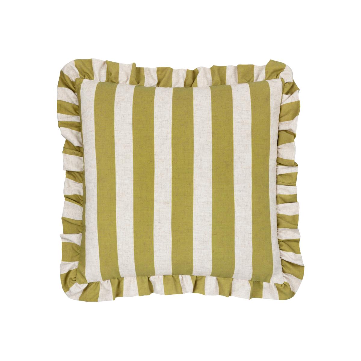 Elevate your home decor with the Linen Stripe Printed Ruffle Cushion. This refined piece combines a timeless wide-stripe design on a linen-look textured fabric with a modern ruffle trim, creating a perfect balance between classic and contemporary. The soft yet structured aesthetic offers a relaxed vibe that complements both traditional and modern interiors. With its attention to detail, this cushion adds personality and charm to any room, inviting compliments from every guest. Designed to blend style with comfort, its the ideal choice for those looking to make a lasting impression without compromising on value or quality.