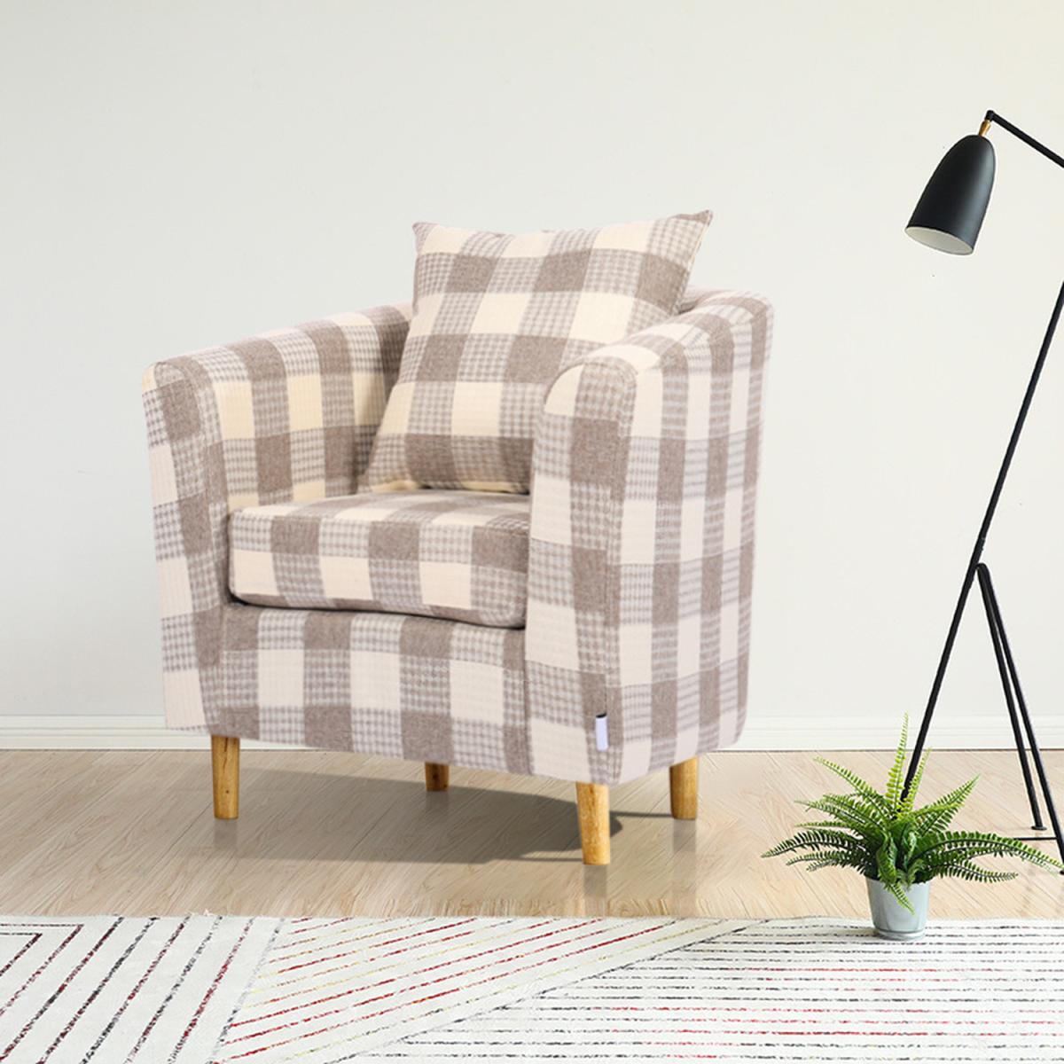 Combine with three coloured tartans, this accent tub chair, Minimalist and home, is a great piece that belongs in every living room. It's upholstered in linen fabric and filled high-density sponge and you can feel comfortable to take a rest, watch movies, or even take a nap. Assembly is required.