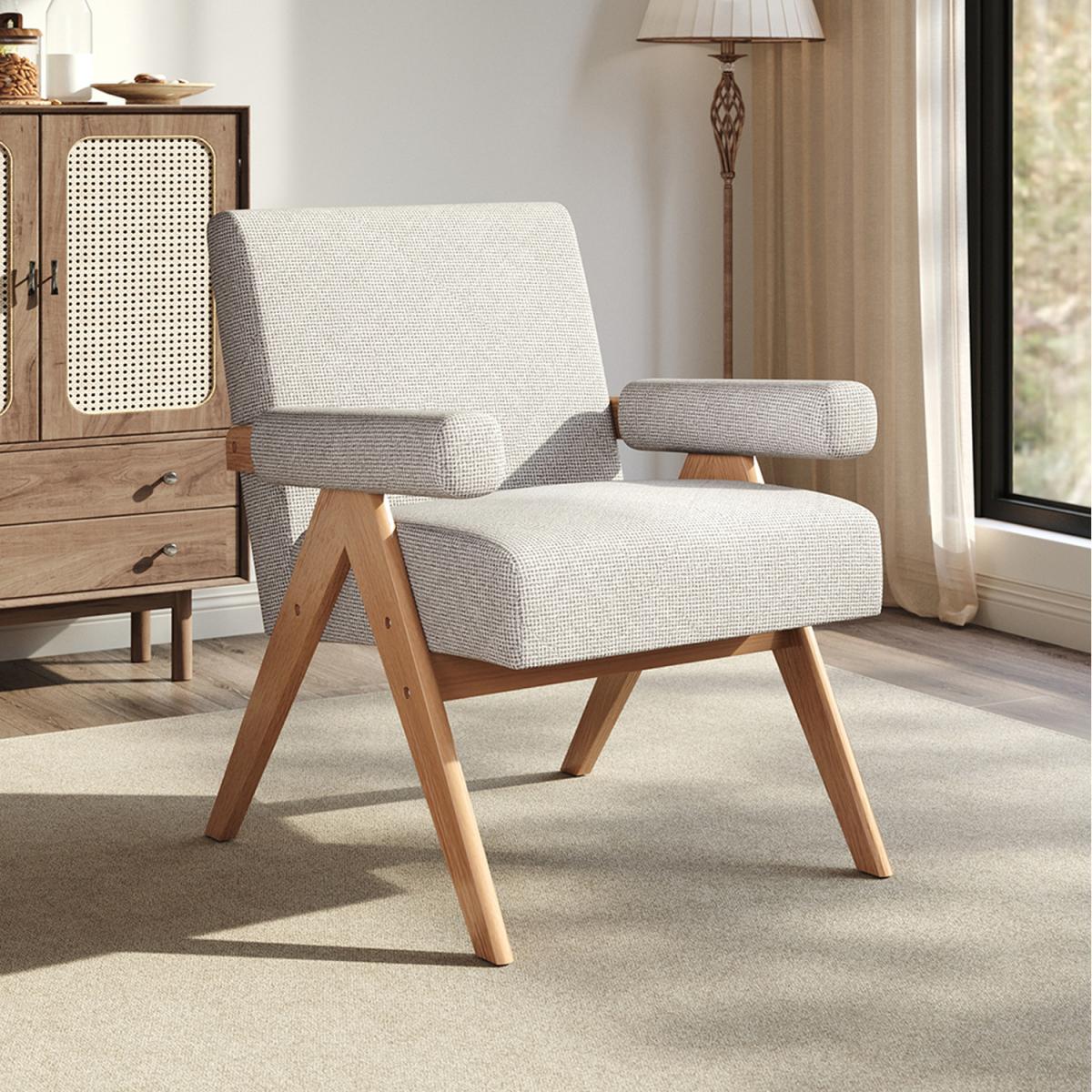I’m a fan of this beige linen armchair for its neat, mid-century lines and solid-wood frame - it brings a warm, grounded feel without overpowering a room. The neutral upholstery makes it a versatile choice for Scandi, coastal or contemporary schemes, and it plays nicely with both pale and richer colour palettes. Styling tip: layer a textured cushion or lightweight throw in a contrasting tone (think sage green or terracotta) and position the chair beside a slim side table or floor lamp. A small jute rug or potted plant will complete a relaxed, lived-in look.