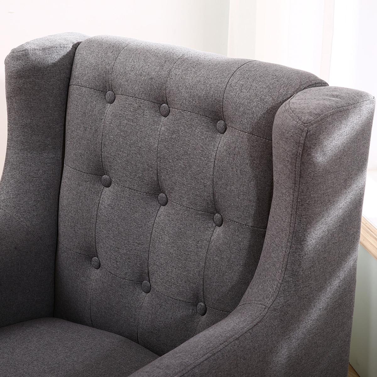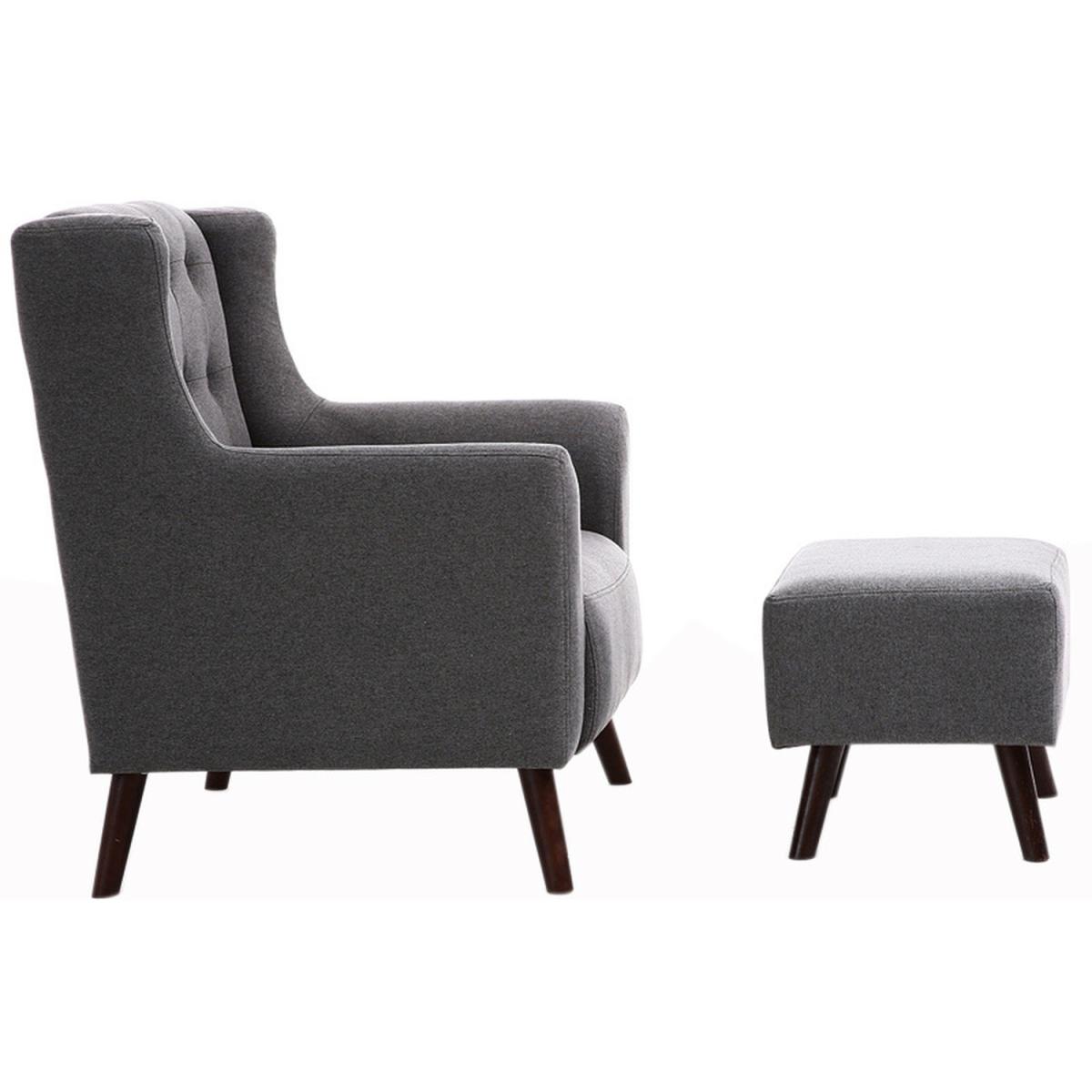 Linen Wingback Chair and Footstool - Dark Grey