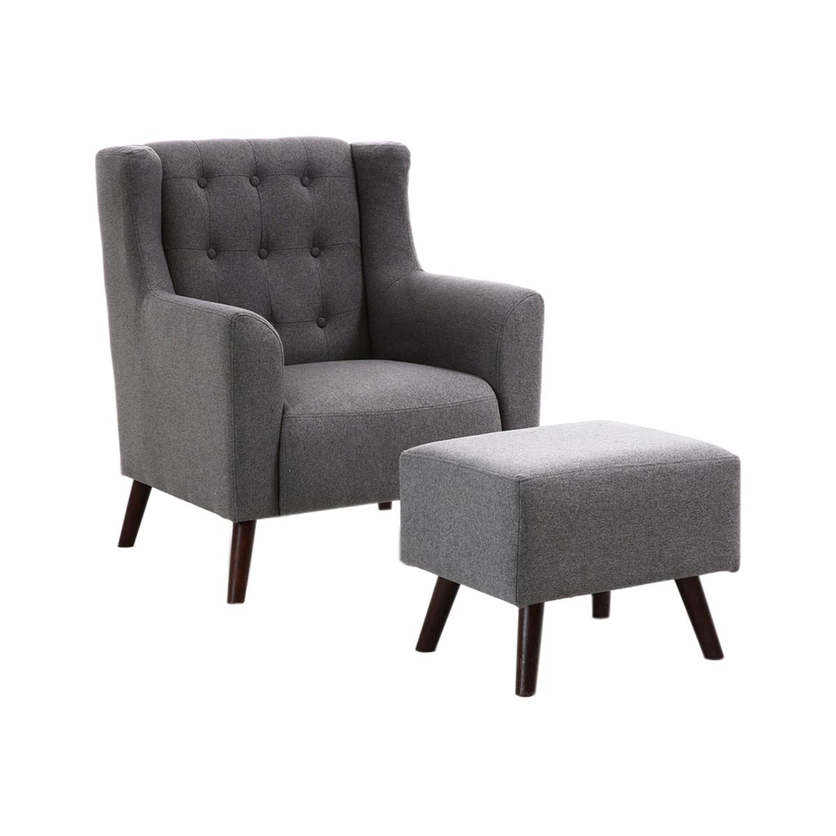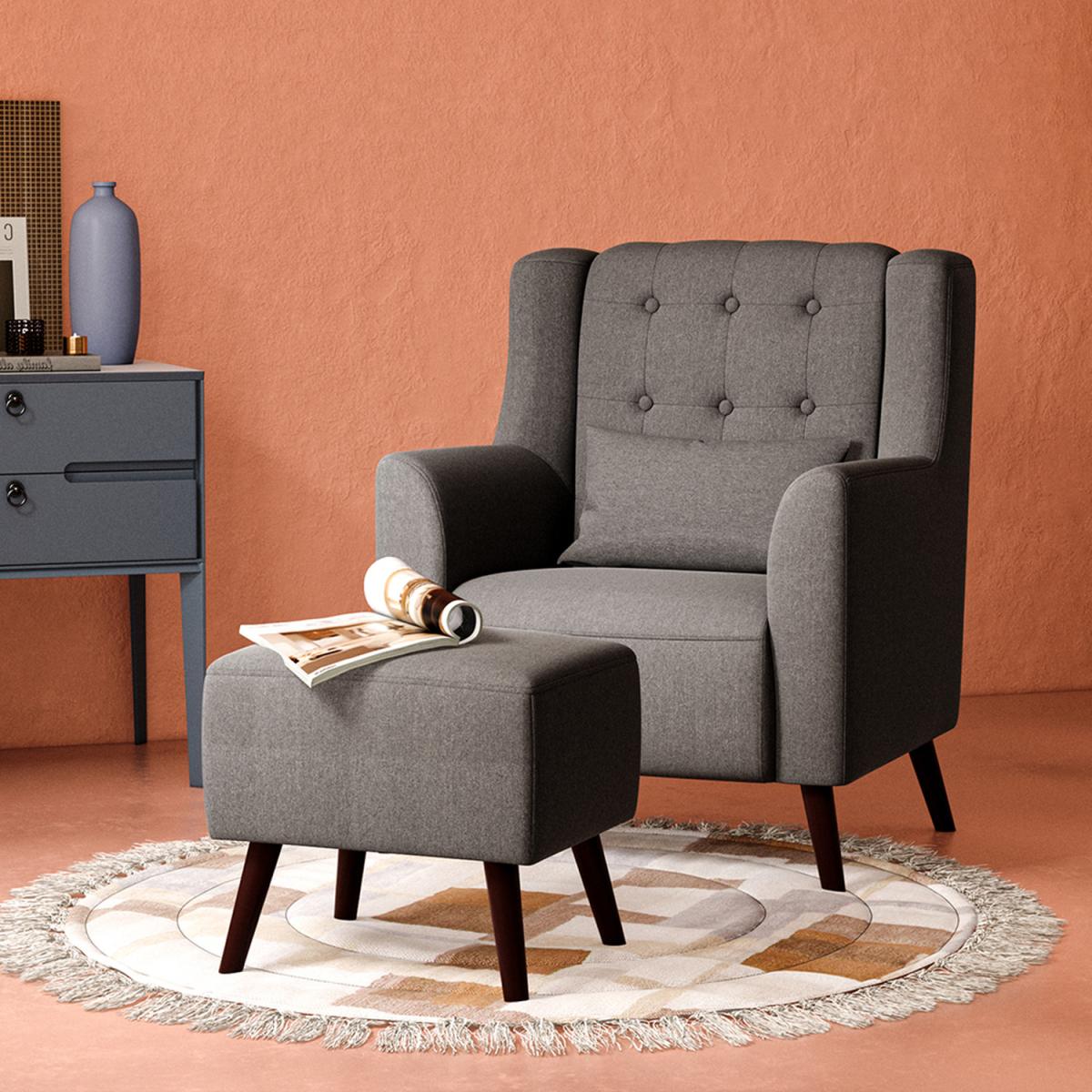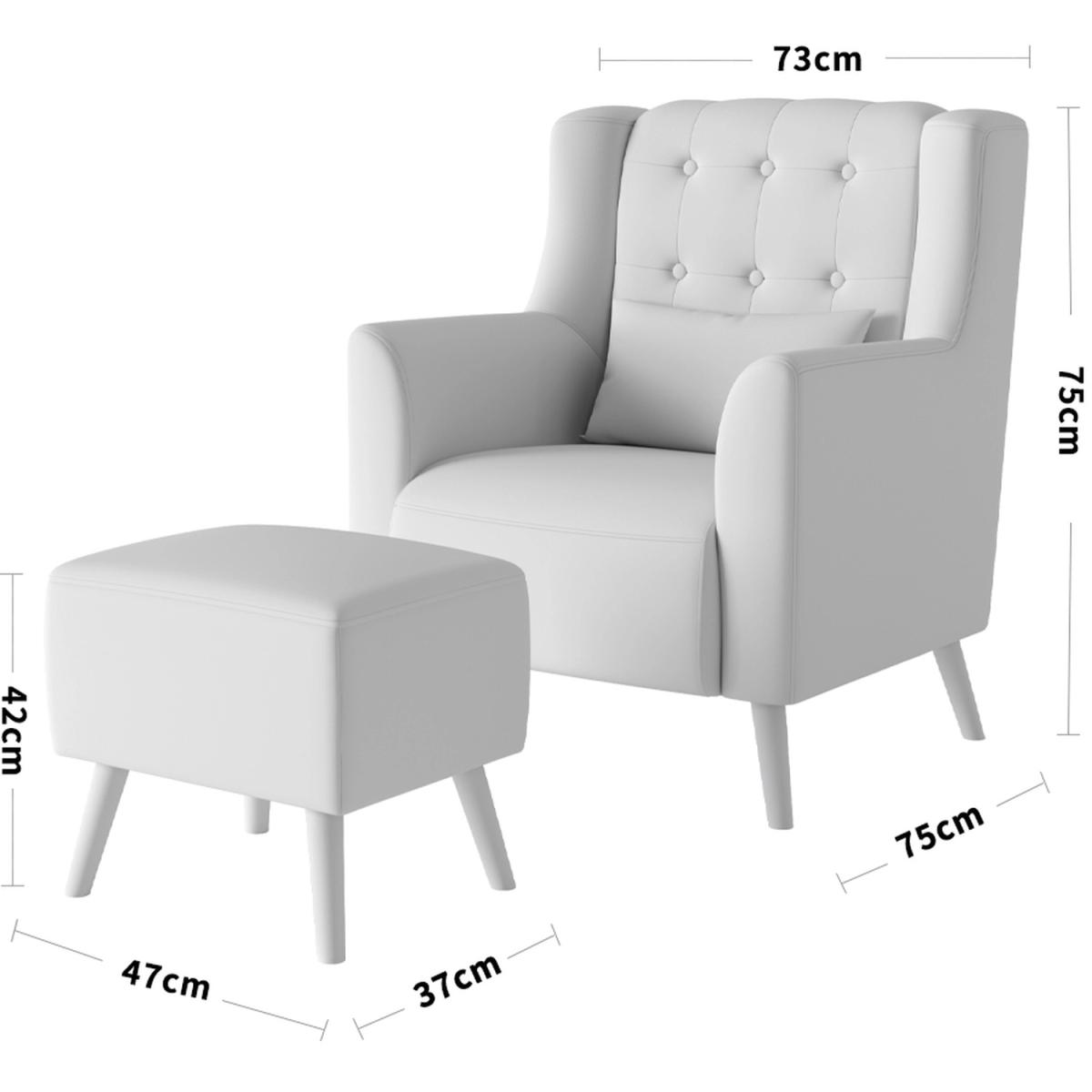 When it come to the end of the day, sometimes all you really want is a spot to unwind your body up and down. As it happens, this armchair with pillow and footstool is just for you. it features inviting foam-filled polyester upholstery and the seat back has button detailing. Assembly is required.