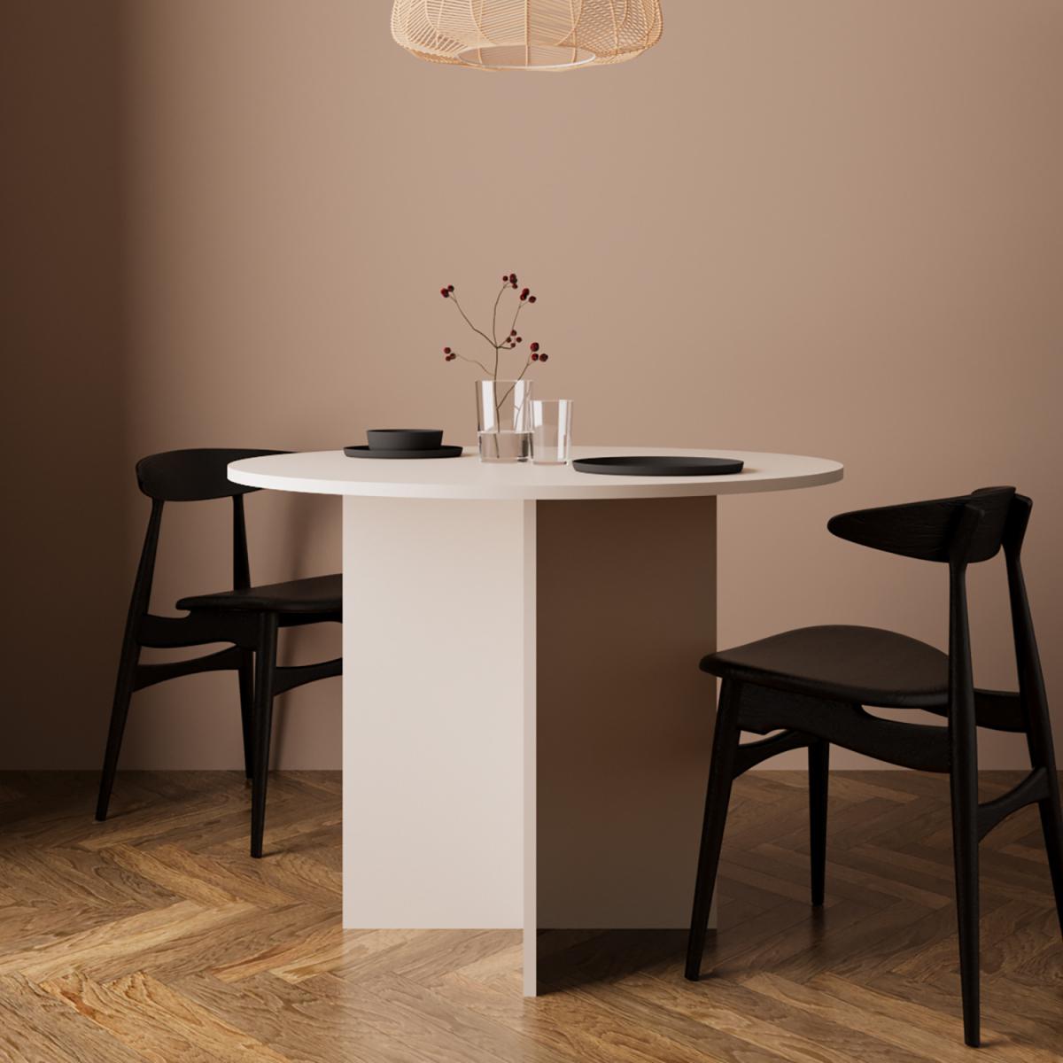 The Linet round dining table combines clean lines and natural finishes for a warm, minimalist feel, ideal as a small kitchen table, small dinner table, or even a coffee table in modern kitchens, dining rooms, or open-plan spaces.