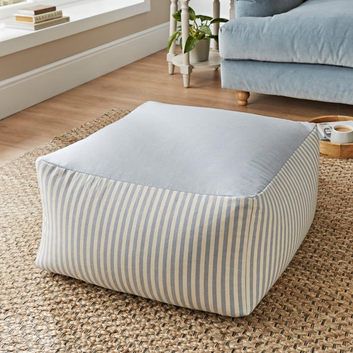 * Zip closure* 100% cotton* Used as a foot stool or extra seating Add charm to your living space with the Linford Stripe Large Cotton Cube Pouffe. This 100% cotton gem doubles as a comfy footstool or extra seating, with a secure zip closure for filling. It's fire-resistant, durable, and easy to maintain with a quick sponge clean. Match it with the coordinating cushion for a cohesive look!