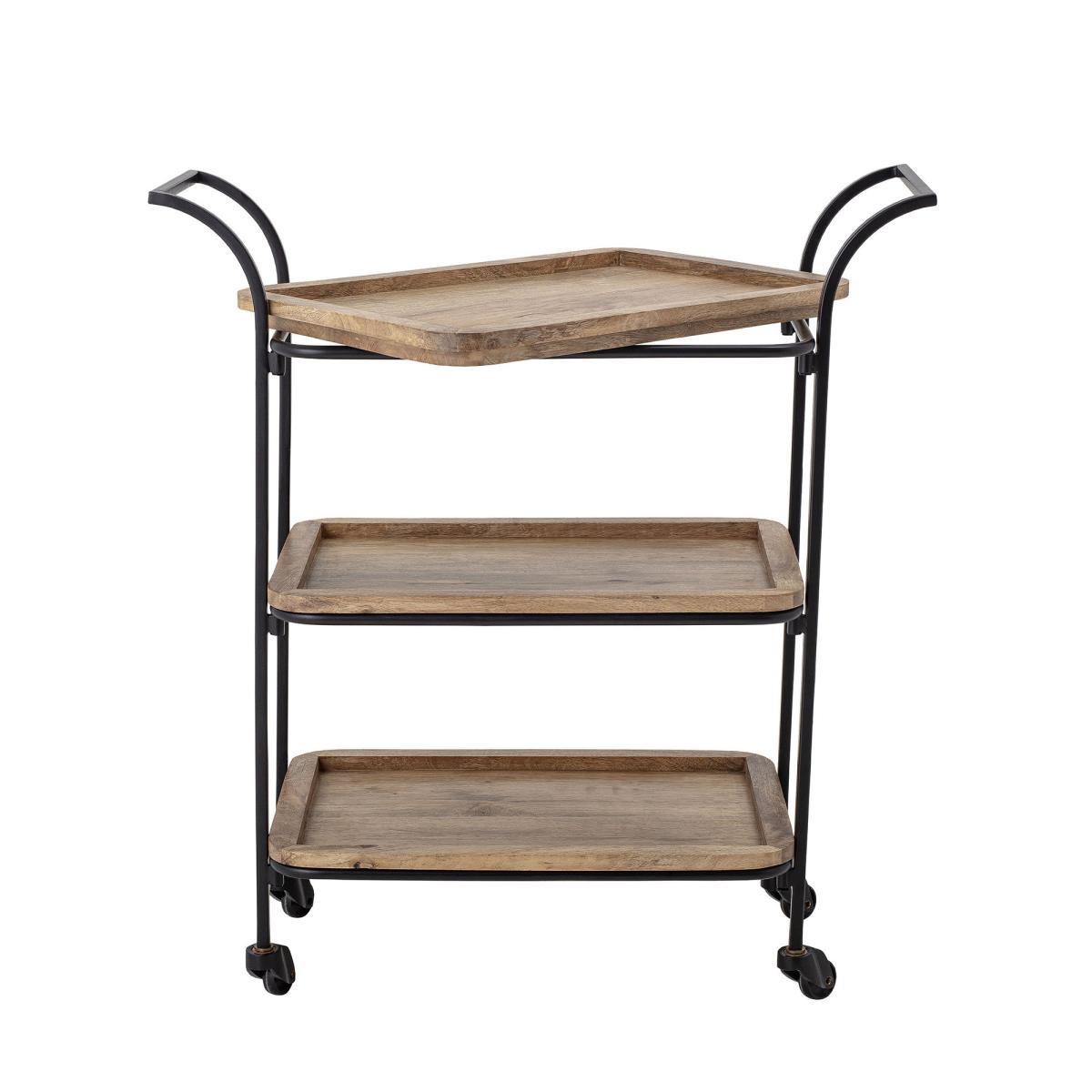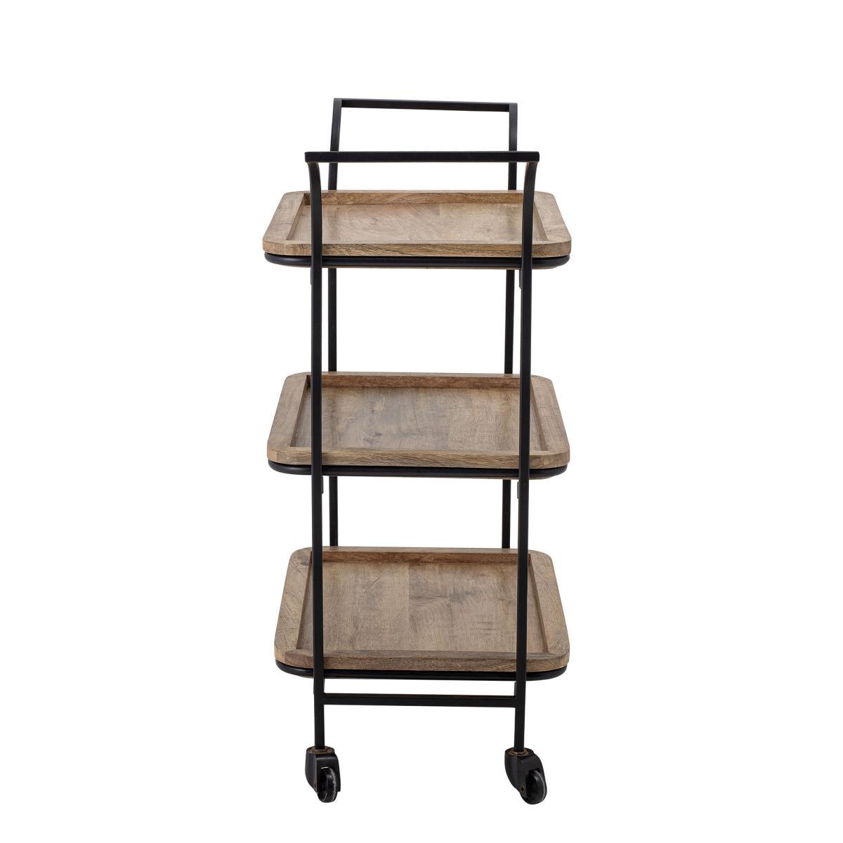 A breath of fresh country air. You’ll love the vintage, authentic look of this serving trolley which seems to have been unearthed in a flea market. The mango wood shelves feature superb grain and a warm, dark brown hue. The three shelves are removable and fit into a thin black metal structure. This trolley can be used as storage in a kitchen or bathroom, as a console in an entrance or as a bar in a living room. You can also use it to display your plants on a veranda.