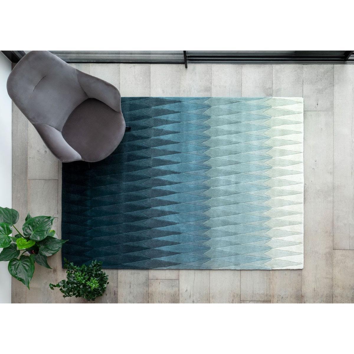 Hand-tufted using luxuriously thick wool, this blue Acacia Rug boasts a modern angular pattern of diamonds with a gradient of colour woven into its design. Committed to providing sustainable design, Linie is part of the worldwide care and fair scheme to support its weavers and fully supports and funds the Linie Design School in India enabling 350 pupils to go to school every day.