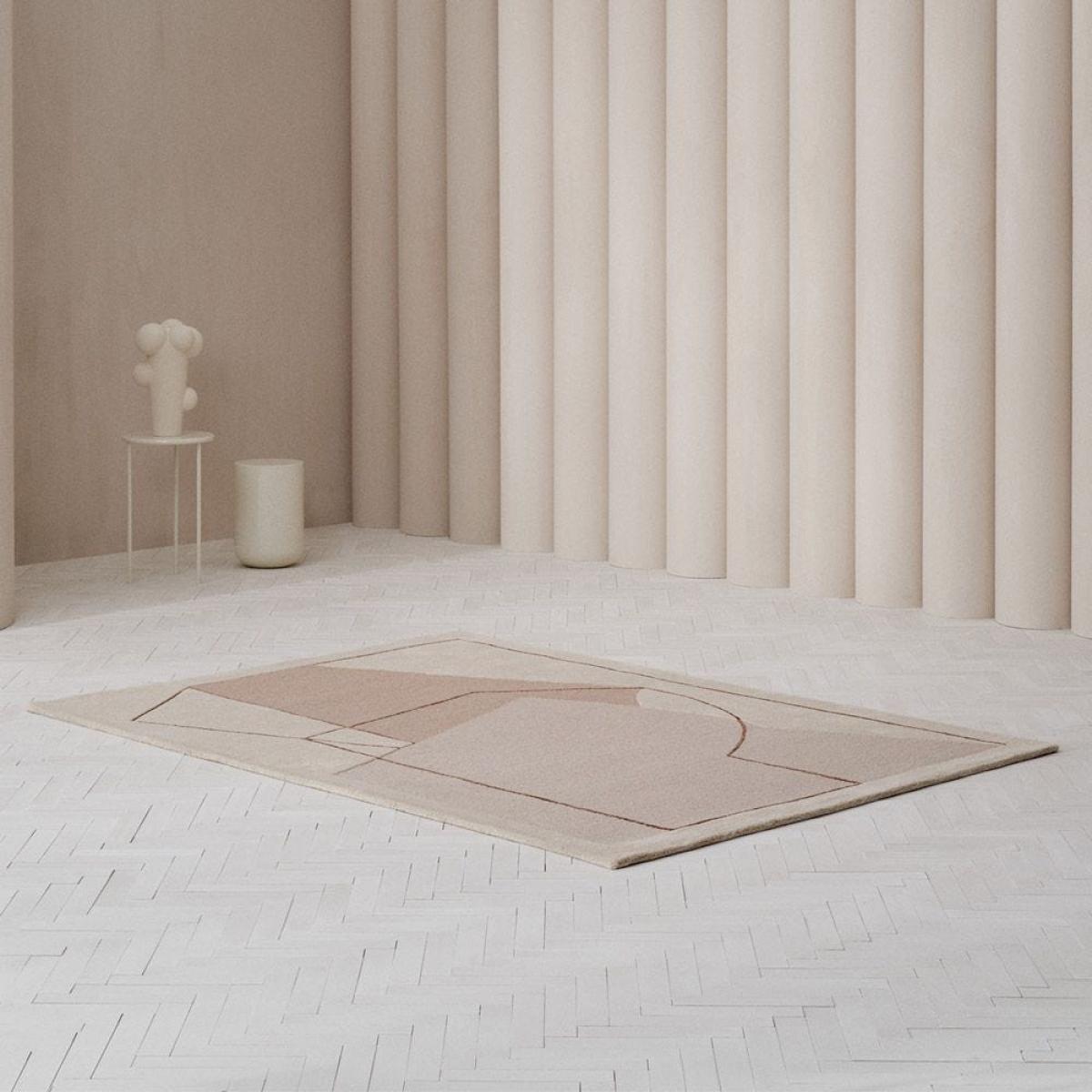 The pink Furbo Rug combines elegance with abstract artistry. Several shades of rose and taupe overlap in irregular geometric shapes with dark gold lines to finish. The contrasting wool textures are tufted, leaving the piece soft to the touch whilst the viscose gold lines add sheen to the design. Its Nordic maker, Linie Design, is committed to sustainable design and is part of the worldwide Care and Fair scheme to support its weavers. Similarly, every rug is crafted using environmentally friendly fibres.