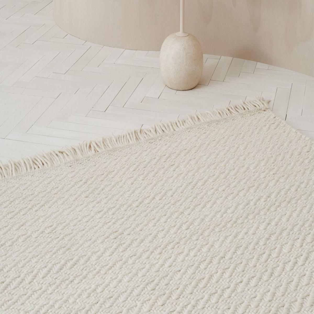 This hand-woven, white Idun Rug from Linie Design is exemplary of luxurious Danish design. The oversized herringbone pattern adds subtle texture to the touch and to the eye. Framed with a delicate fringing, this is a clean and discrete rug with an elegant twist. The rug’s Nordic maker, Linie Design, is committed to sustainable design and is part of the worldwide Care and Fair scheme to support its weavers. Similarly, every rug is crafted using environmentally friendly materials.