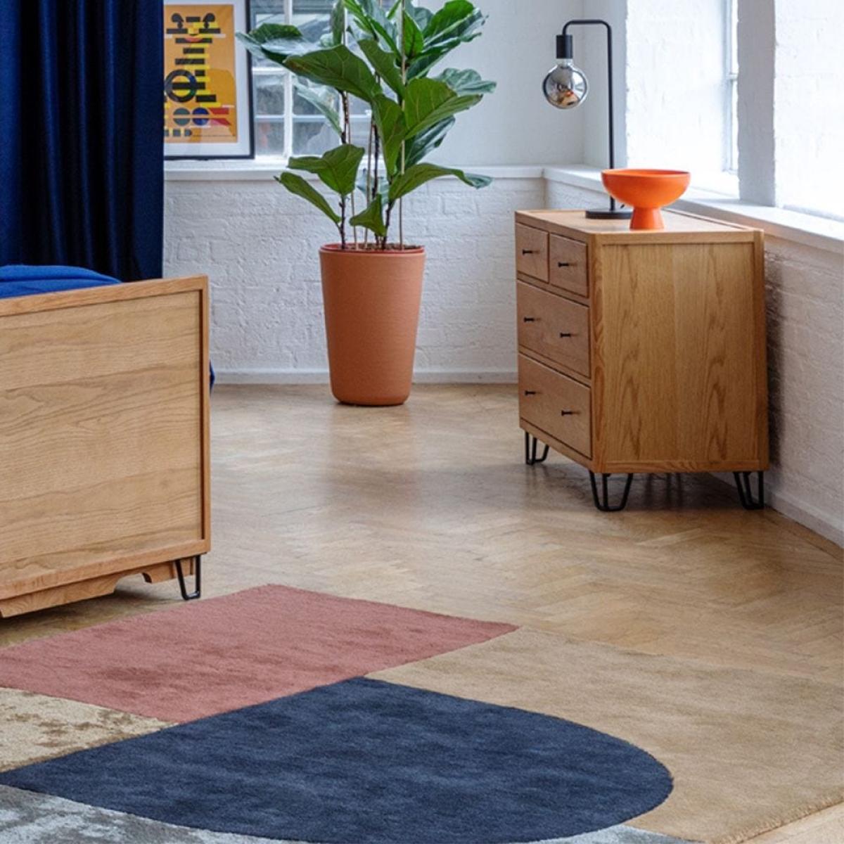This stunning mustard Vilia Rug should take centre stage in any contemporary living space. Vilia features a mixture of cylindrical and square shapes that are reminiscent of Art Deco design. Hand-tufted in India using luxurious viscose and wool, this really is a rug to be admired. Plus, its Nordic maker, Linie Design, is committed to sustainable design and is part of the worldwide Care and Fair scheme to support its weavers.