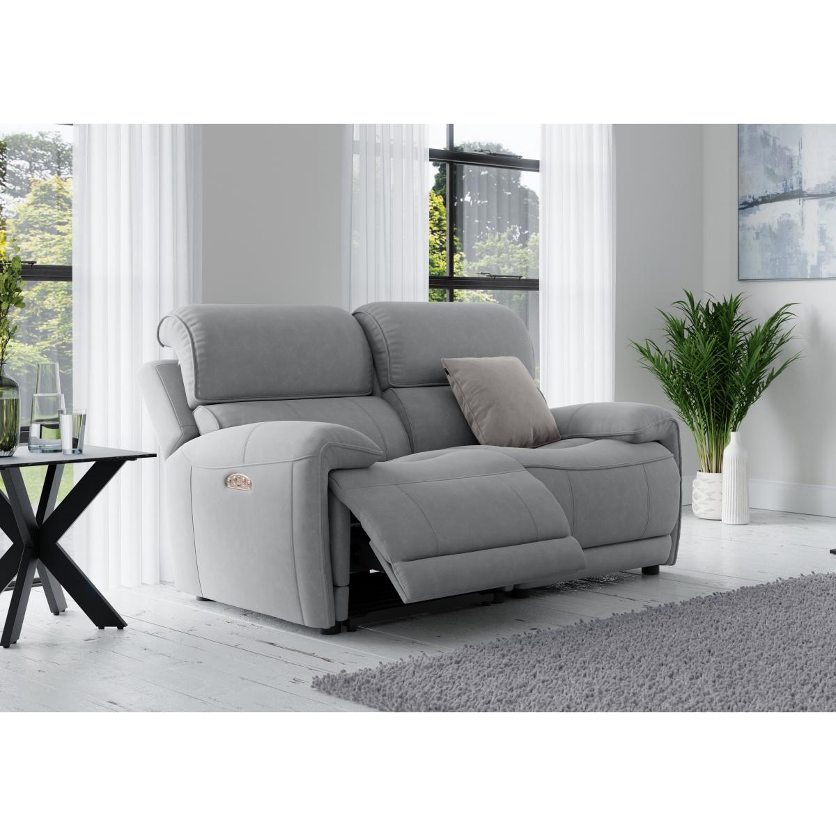 The fantastic value Link sofas and chairs are big in scale and big on power reclining comfort. This roomy, curvaceous classic back collection is available in fabric or 100% leather in an extensive choice of colours. Choose your favourite upholstery, then get ready to relax. You’ll feel thoroughly pampered by sumptuous cushioning and inbuilt lumbar support as the power recliners whisk you off your feet at the touch of a button. Generously padded power adjustable headrests add to the comfort, and there are even USB ports for recharging your devices. The collection is modular, so you can create your perfect sofa. Static options are also available. The superbly comfortable Link sofas and chairs sit alongside and complement the Link range of furniture. With deep bucket seats, power recliners and headrests and soft to the touch fabric upholstery this two seater sofa is made for relaxation. And it’s great value too. Why you’ll love it Wide, ultra-comfy, sprung bucket-style seats. Smooth power recliner and power headrest. Relaxed, contemporary style. Sumptuous, contoured cushioning. Soft-touch fabric upholstery, finished with piping. Deeply padded headrests, armrests and lumbar support. In-built USB ports for charging devices. Also available as a static sofa. Exclusive to Furniture Village at a great value price. What you need to know Medium comfort level. Strong solid hardwood frame, hidden glide feet. Foam with fibre top seat cushions. Luxury fibre-filled back cushions, arm cushions and headrests. Seat cushions rest on no-sag springs. Rubber webbing back suspension. Power recliner model has USB ports. Some fabrics can show wear on areas of more use or in direct sunlight. Please read our upholstery care guide for more advice. Allow time for recliners to settle. Minor gaps for motion vary by floor type. Part of the Link range of sofas, chairs and footstools in fabric or leather.