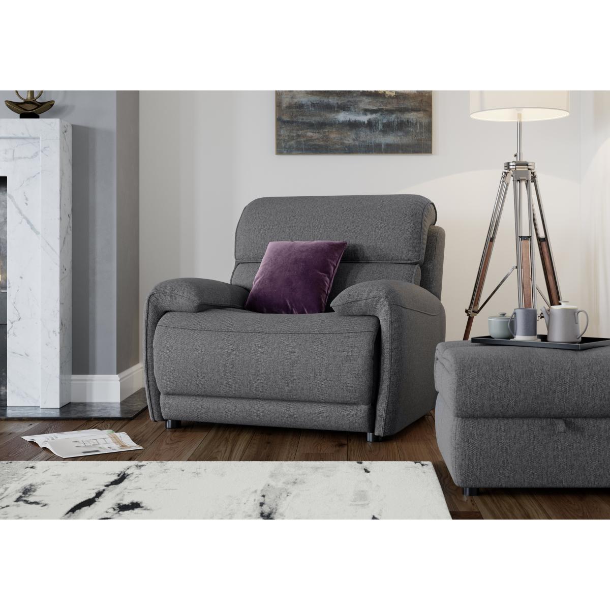 The fantastic value Link sofas and chairs are big in scale and big on power reclining comfort. This roomy, curvaceous classic back collection is available in fabric or 100% leather in an extensive choice of colours. Choose your favourite upholstery, then get ready to relax. You’ll feel thoroughly pampered by sumptuous cushioning and inbuilt lumbar support as the power recliners whisk you off your feet at the touch of a button. Generously padded power adjustable headrests add to the comfort, and there are even USB ports for recharging your devices. The collection is modular, so you can create your perfect sofa. Static options are also available. The superbly comfortable Link sofas and chairs sit alongside and complement the Link range of furniture. Let this sumptuously cushioned armchair pamper you head to toe. With inbuilt lumbar support and soft touch fabric upholstery. Why you’ll love it Wide, ultra-comfy, sprung bucket-style seat. Relaxed contemporary style. Sumptuous, contoured cushioning. Soft-touch fabric upholstery, finished with piping. Deeply padded headrest, armrests and lumbar support. Also available with power recliner and power headrest. Exclusive to Furniture Village at a great value price. What you need to know Medium comfort level. Strong solid hardwood frame, hidden glide feet. Foam with fibre top seat cushions. Luxury fibre-filled back cushion, arm cushions and headrest. Seat cushion rests on no-sag springs. Rubber webbing back suspension. Some fabrics can show wear on areas of more use or in direct sunlight. Please read our upholstery care guide for more advice. Part of the Link range of sofas, chairs and footstools in fabric or leather.