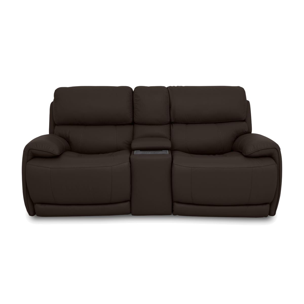 The fantastic value Link sofas and chairs are big in scale and big on power reclining comfort. This roomy, curvaceous classic back collection is available in fabric or 100% leather in an extensive choice of colours. Choose your favourite upholstery, then get ready to relax. You’ll feel thoroughly pampered by sumptuous cushioning and inbuilt lumbar support as the power recliners whisk you off your feet at the touch of a button. Generously padded power adjustable headrests add to the comfort, and there are even USB ports for recharging your devices. The collection is modular, so you can create your perfect sofa. Static options are also available. The superbly comfortable Link sofas and chairs sit alongside and complement the Link range of furniture. This stunning two-seater power recliner sofa in 100% leather has everything you need to relax. As well as power recliners, you get power headrests, USB charging and even handy cupholders. Why you’ll love it This ultra-comfy 2-seater leather sofa is packed with power features. Relaxed contemporary style for chilled-out evenings. Centre console with wireless device charging, cupholders and storage compartment. Power features, including power headrests, promise total relaxation. Power back recline and elevating footrests can be operated independently. Sumptuous contoured cushioning. Well-padded headrests, armrests and lumbar support. Built-in USB ports for easier device charging. In 100% leather upholstery finished with piping. The Link range is fully modular. Exclusive to Furniture Village at a great-value price. This leather power recliner 2-seater sofa with power headrests is part of our Link range. What you need to know Medium comfort level. Seat suspension: no-sag springs. Seat cushioning: foam with fibre top. Seat cushioning is fixed. Back suspension: rubber webbing. Back cushioning: fibre. Back cushioning is fixed. Arm cushioning: fibre. Please allow time for new recliners to ease. Leather has unique marks and characteristics with variation in colour and texture. Leather softens with use. Smoothing the tops of leather cushions prevents signs of visual comfort. Please read our upholstery care guide for more advice. Part of the Link range of sofas, chairs and footstools in fabric or leather.