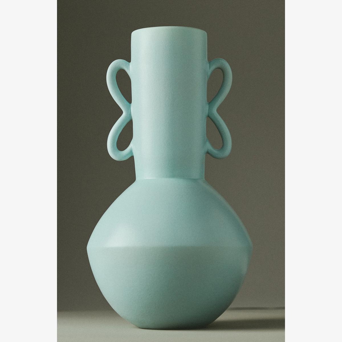 This minimalist earthenware vase features a sculptural silhouette with a modern matte finish, complemented by beautiful butterfly-like handles. * 100% Earthenware * Made in Portugal