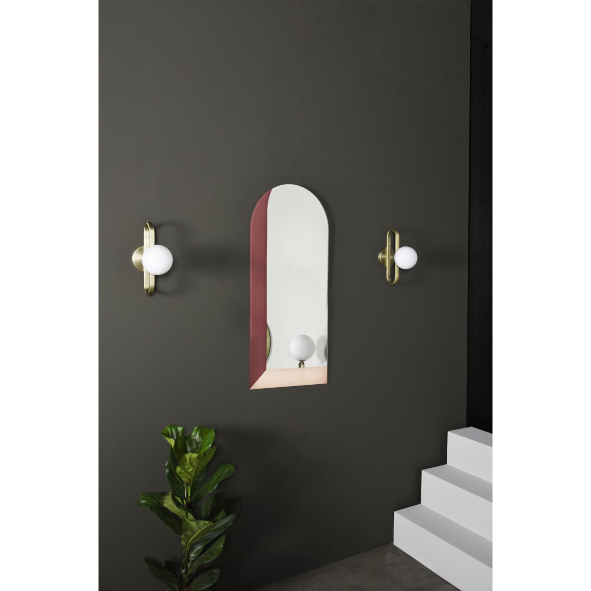 A true trompe l'oeil, the Linna mirror plays with our perception of volumes. This glass mirror is dressed with two strips of powder colours printed under the glass (one on the side, the other at the bottom of the mirror). These powerful coloured lines create an amazing effect of perspective and an illusion of depth. This 3D effect transforms the Linna mirror into a dream-like window opening onto another dimension. The Linna mirror is an attractive object you’ll want to touch and have as your own, as much for its poetry as for its functionality. Italian designer Emanuele Pizzolorusso explains: ''These mirrors are inspired by the architecture and ancient windows of castles. ''.