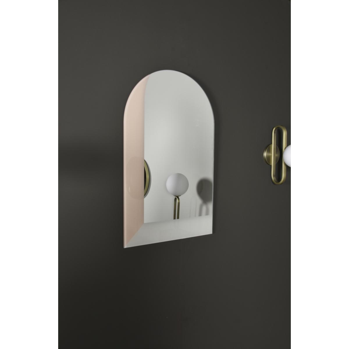 A true trompe l'oeil, the Linna mirror plays with our perception of volumes. This glass mirror is dressed with two strips of powder colours printed under the glass (one on the side, the other at the bottom of the mirror). These powerful coloured lines create an amazing effect of perspective and an illusion of depth. This 3D effect transforms the Linna mirror into a dream-like window opening onto another dimension. The Linna mirror is an attractive object you’ll want to touch and have as your own, as much for its poetry as for its functionality. Italian designer Emanuele Pizzolorusso explains: ''These mirrors are inspired by the architecture and ancient windows of castles. ''.