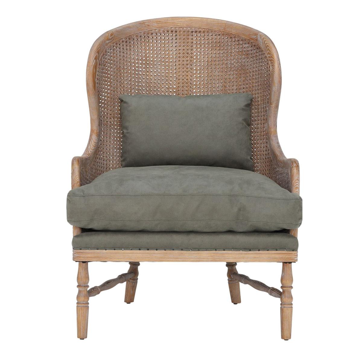 I love this armchair for its versatile charm and inviting style. The green fabric adds a vibrant pop of colour that works particularly well in both contemporary and traditional interiors, creating a cosy yet sophisticated focal point. Its rattan back lends a natural texture that pairs beautifully with neutral tones or botanical themes, making it ideal for living rooms, reading nooks, or even a bedroom corner. Practical styling tips include layering with textured cushions or throws in contrasting colours to enhance its character. Keep the surrounding décor simple to allow the chair’s colour and craftsmanship to stand out, or pair with natural wood accents to create a cohesive, earthy vibe.