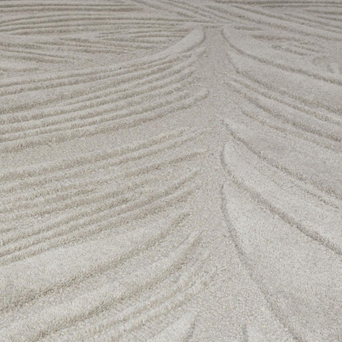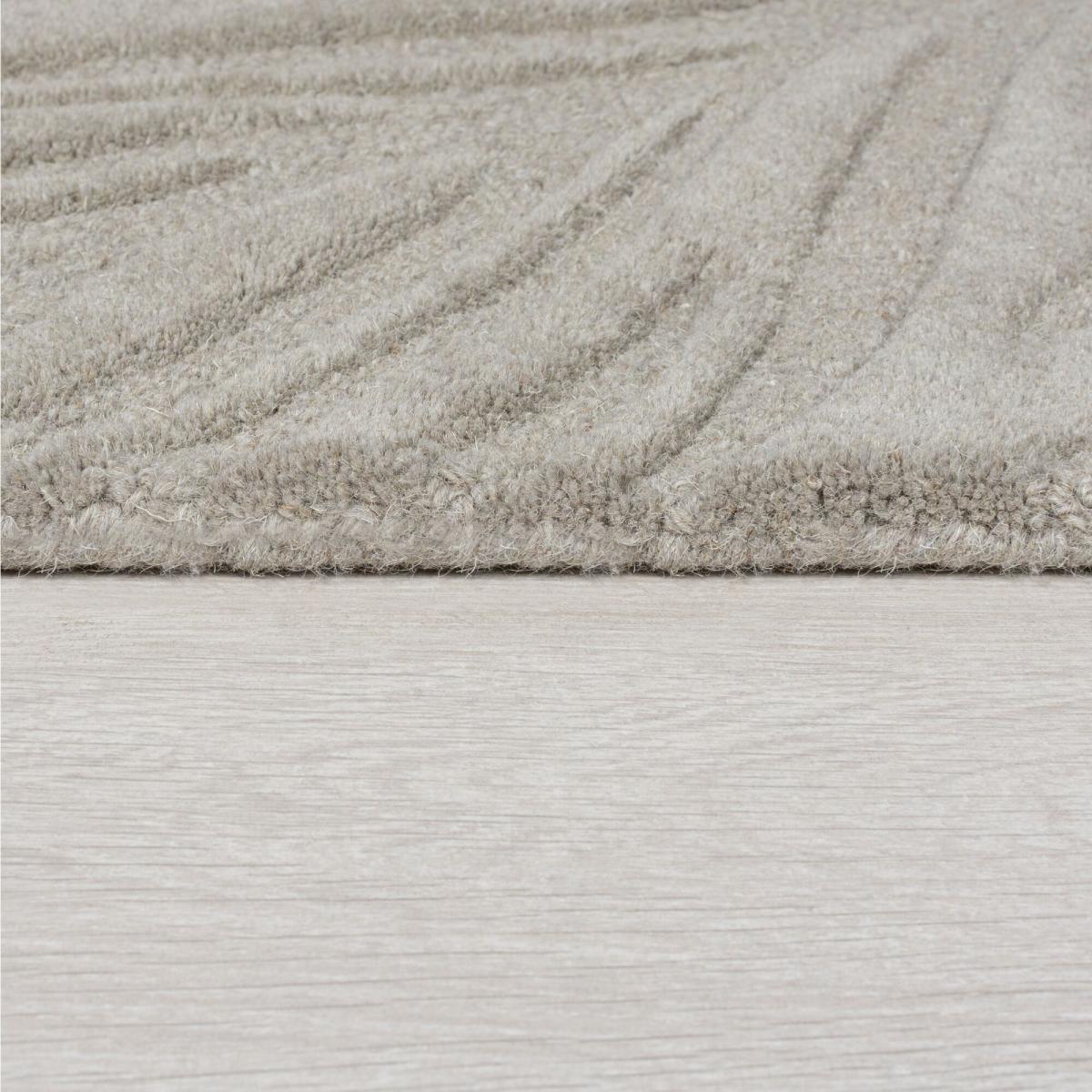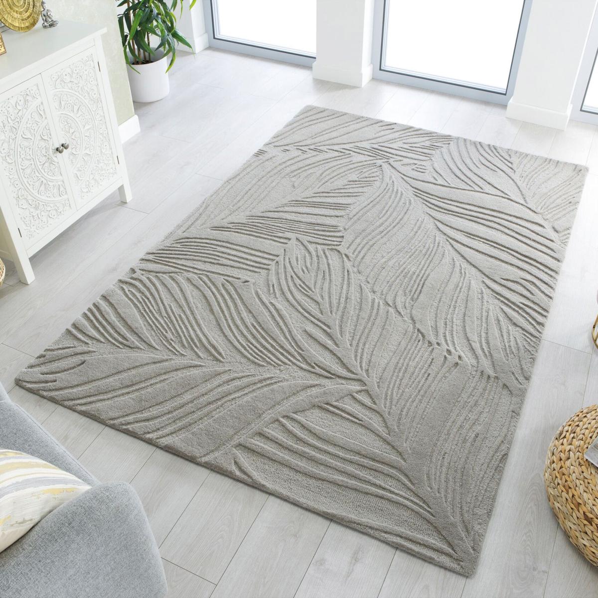 Choose the Lino Leaf Rug to inject stylish tones and shapes into your space. Hand-crafted with a cut and loop effect to enhance texture within the semi-plain style. Handcrafted in India, this 100% wool rug embraces natural warmth and sound insulating qualities. We loving using the muted shades of the Lino Leaf rug collection to create cosy and calming zones in living spaces and bedrooms. Don't forget to buy our handy anti-slip mat, [here,](https://www. dunelm. default Sku Id=30132247) available in a range of sizes. This is a dense hand-made rug. When opening, re-roll your rug pile out and leave in a warm room for 24 hours before putting in place, this will help to reduce wrinkles and curling from packing. Do not pull any loose threads, please cut them carefully with scissors to remove. Avoid prolonged exposure to direct sunlight as this may cause fading of the colour. Turn your rug regularly to ensure even wear and to reduce pressure marks from furniture. Wool fibres may shed when new and during use, this is a characteristic of this product and is not a defect and should reduce with normal use and regular vacuuming. Before using any cleaning products on your rug, test on an inconspicuous area first to ensure it does not affect the colour. Clean spills immediately by blotting with a clean dry white cloth - do not rub as this may stain the fibres. Vacuum your rug regularly to remove everyday dirt, we recommend the use of a suction type vacuum cleaner as a rotating vacuum brush can cause damage to the pile surface. We recommend the use of an anti-slip mat beneath your rug to prevent it from slipping and sliding out of place. Latex is used on the back of this rug. Please do not leave babies or young children unsupervised on this rug.