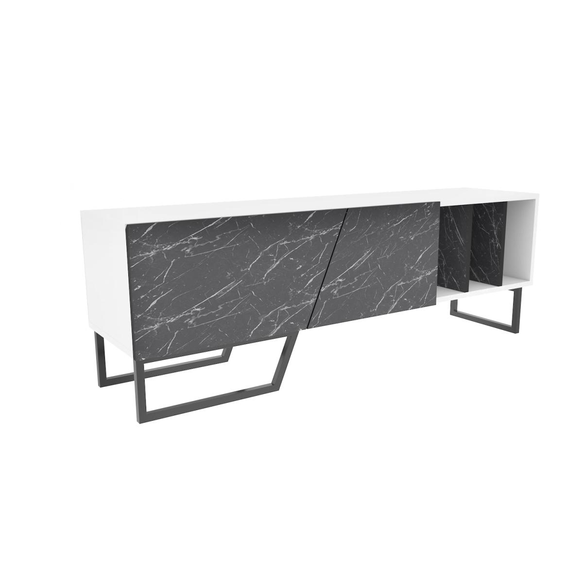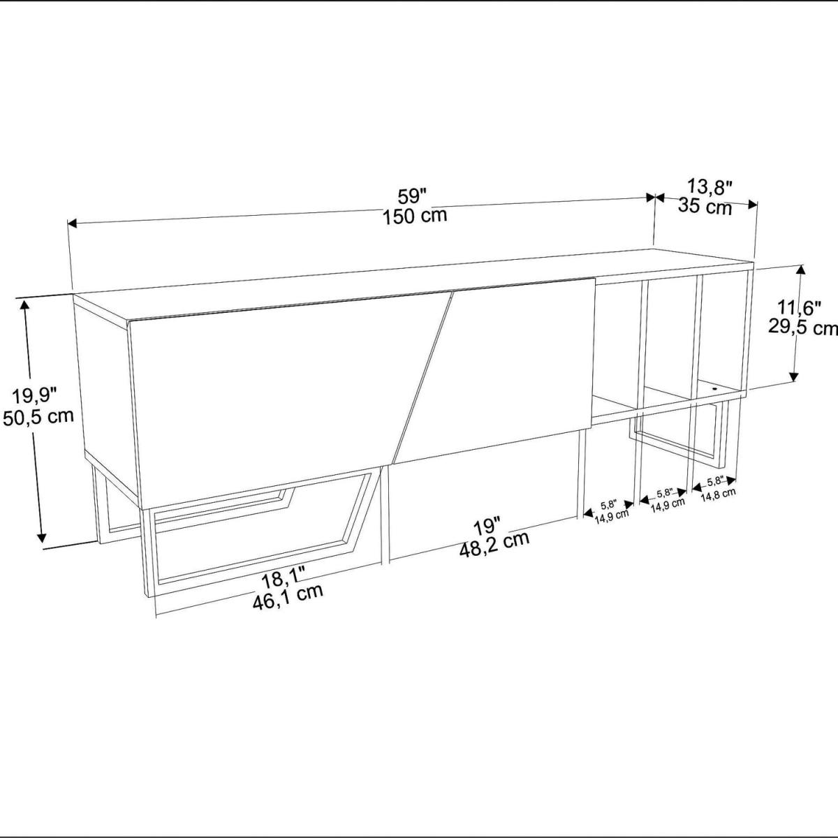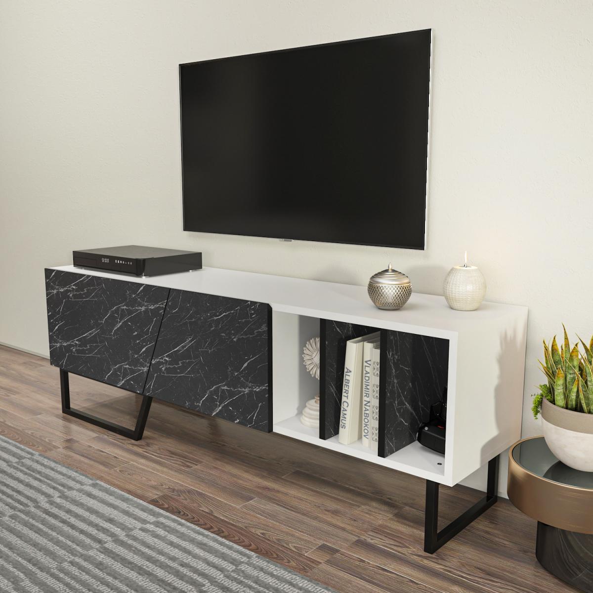 Linossa 150 cm wide TV stand and media console accommodate TVs up to 60". Thanks to its cabinets and shelves, it offers you storage for your books, CDs, magazines, etc. Its asymmetrical design provides a different look to your home. Linossa TV stand, where modernism and elegance come together, will be the most glamorous part of your room. It is made of an 18 mm thick melamine-coated particle board. Legs are iron metal. Wood edges are banded with PVC edge banding tape. The frame/legs are coated with impact and scratch-resistant static paint. Overall, it is manufactured using eco-friendly and health-friendly TSE-certified materials. The product will be delivered to the customer in the original package as disassembled. It is designed to be assembled by the customer using a power drill and screwdriver. Assembly instructions and installation hardware are included in the package. For fast and error-free installation, product parts are numbered with stickers in accordance with the assembly guide.