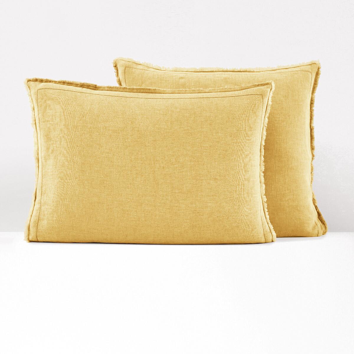 Linot washed linen bed linen is an exclusive creation designed by our in-house stylists. This iconic bed linen with its timeless style is one of our customers' favourites. A fresh material in summer and comfortable in winter, washed linen becomes softer and more beautiful with every wash.. Slightly wrinkled, ironing is unnecessary. Product Details • 100% linen • Washed linen • 2cm ruffle finish. Care Advice • Machine washable at 40°C • Slightly wrinkled, ironing is unnecessary. Sizes • 50 x 70cm: Rectangular. • 63 x 63cm: Square • OEKO-TEX® Standard 100. Standard 100 certification by OEKO-TEX® tests textile products for harmful substances via an independent, international label.