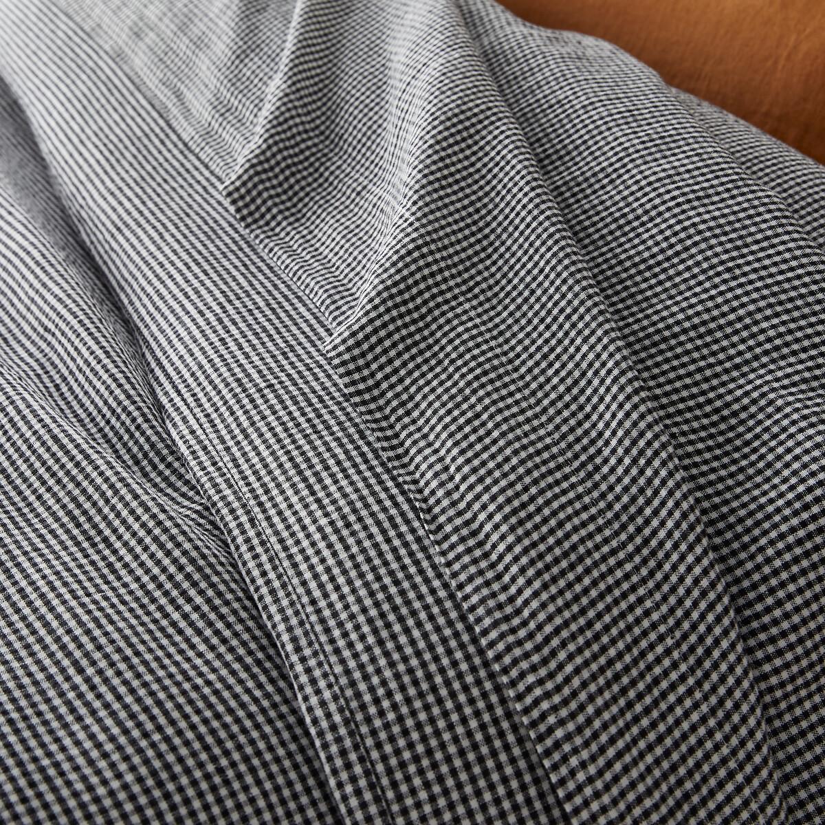 Timeless. A gingham pattern on a washed linen fabric, Linot creates a chic and warm atmosphere. A fresh material in summer and comfortable in winter, washed linen becomes softer and more beautiful with every wash.. Slightly wrinkled, ironing is unnecessary. Product Details • 100% linen • Gingham pattern on both sides • Straight buttoned hem Care Advice • Machine washable at 40°CSizes • 140 x 200cm: Single • 200 x 200cm: Double • 240 x 220cm: King • 260 x 240cm: Super King • Made in Europe. • OEKO-TEX® Standard 100. Standard 100 certification by OEKO-TEX® tests textile products for harmful substances via an independent, international label.