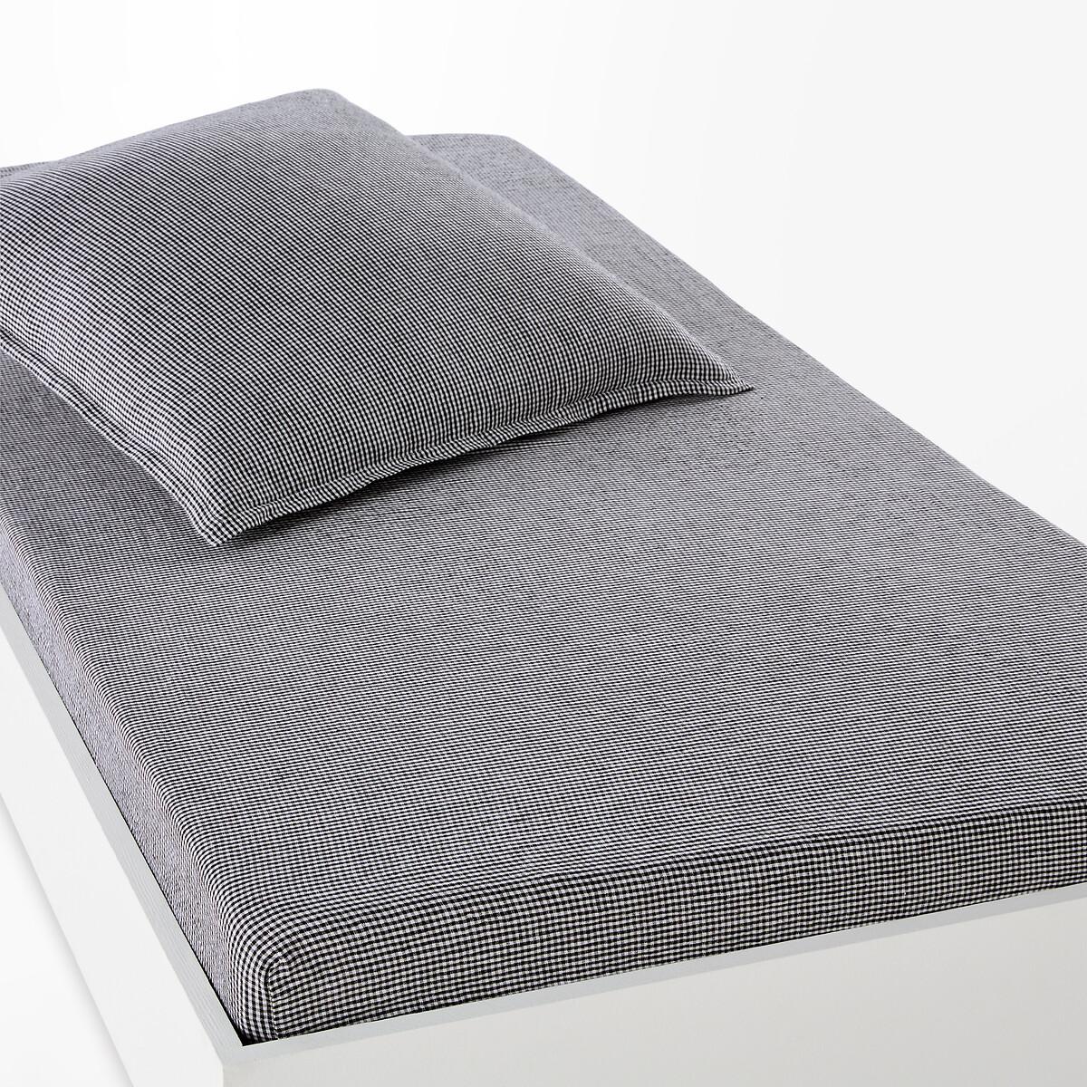 Timeless. A gingham pattern on a washed linen fabric, Linot creates a chic and warm atmosphere. A fresh material in summer and comfortable in winter, washed linen becomes softer and more beautiful with every wash.. Slightly wrinkled, ironing is unnecessary. Product Details • 100% linen • Flap height 30cm for thick mattresses • Gingham print. Care Advice • Machine washable at 40°CSizes • 90 x 190cm: Single • Made in Europe. • OEKO-TEX® Standard 100. Standard 100 certification by OEKO-TEX® tests textile products for harmful substances via an independent, international label.