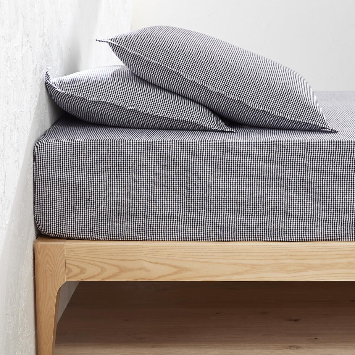 Timeless. A gingham pattern on a washed linen fabric, Linot creates a chic and warm atmosphere. A fresh material in summer and comfortable in winter, washed linen becomes softer and more beautiful with every wash.. Slightly wrinkled, ironing is unnecessary. Product Details • 100% linen • Flap height 30cm for thick mattresses • Gingham print • 4 elasticated corners Care Advice • Machine washable at 40°CSizes • 90 x 190cm: Single • 140 x 190cm: Double • 140 x 200cm: Double • 160 x 200cm: King • 180 x 200cm: Super King • Made in Europe. • OEKO-TEX® Standard 100. Standard 100 certification by OEKO-TEX® tests textile products for harmful substances via an independent, international label.