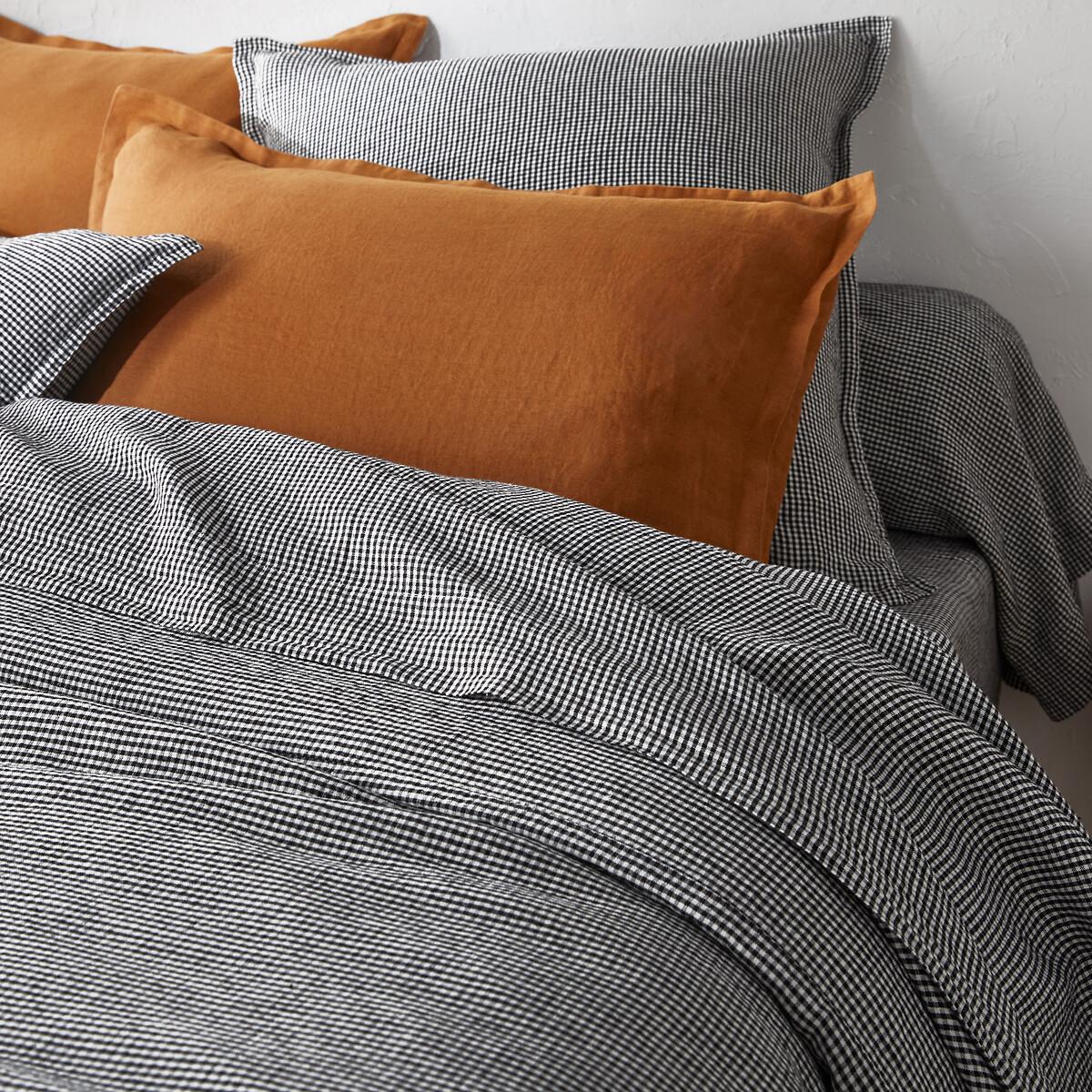 Timeless. A gingham pattern on a washed linen fabric, Linot creates a chic and warm atmosphere. A fresh material in summer and comfortable in winter, washed linen becomes softer and more beautiful with every wash.. Slightly wrinkled, ironing is unnecessary. Product Details • 100% linen • Gingham pattern on both sides • Straight buttoned hem Care Advice • Machine washable at 40°CDimensions • 140 x 200cm: Single • 200 x 200cm: Double • 240 x 220cm: King • 260 x 240cm: King • Made in Europe. • OEKO-TEX® Standard 100. Standard 100 certification by OEKO-TEX® tests textile products for harmful substances via an independent, international label.