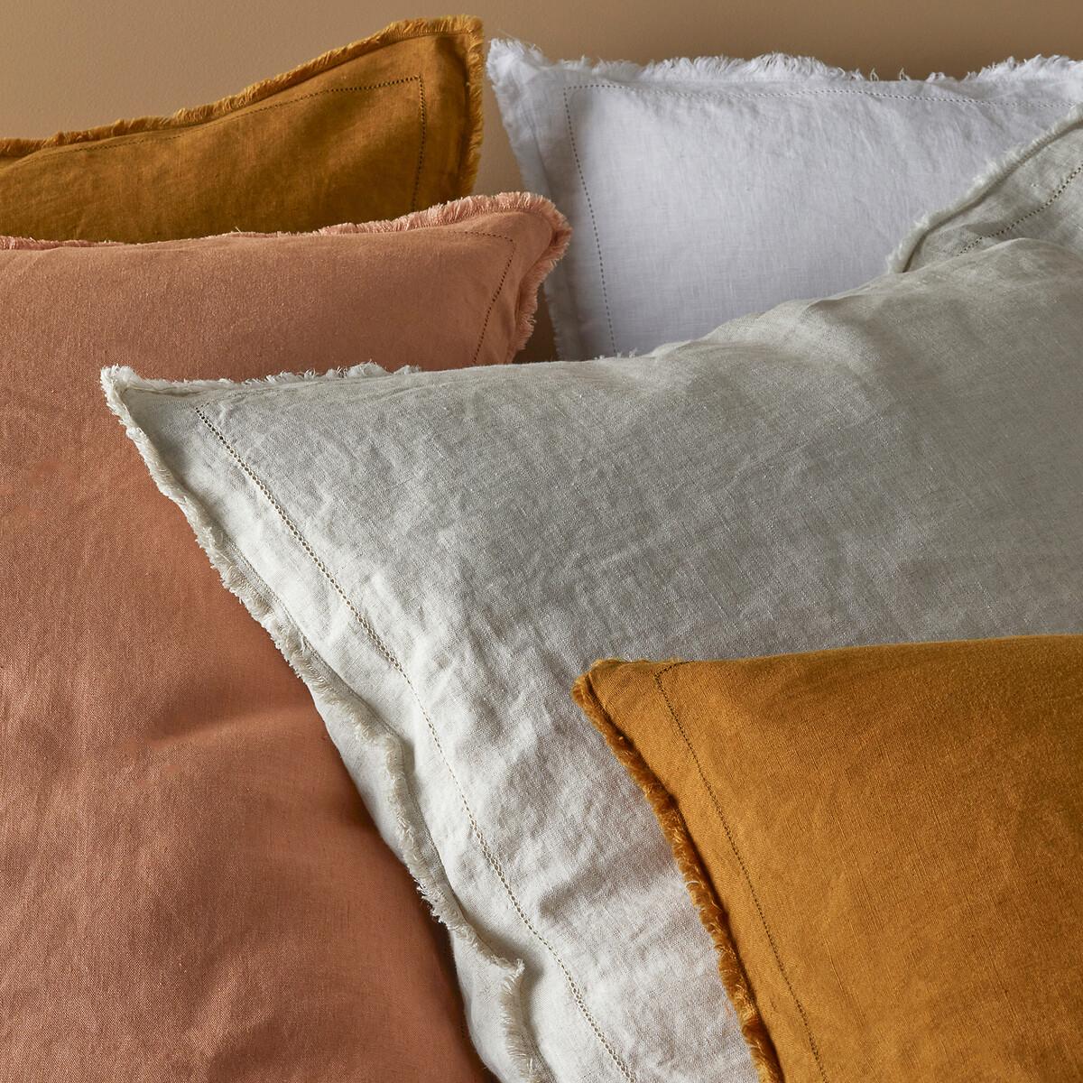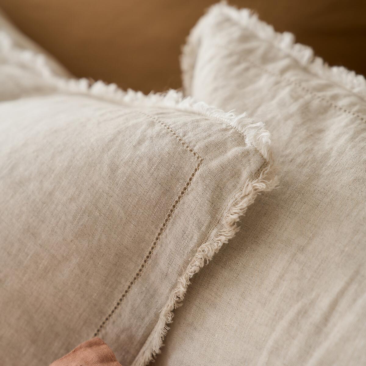 Timeless. Linot creates a refined and warm atmosphere with a playful fringed finish. A fresh material in summer and comfortable in winter, washed linen becomes softer and more beautiful with every wash.. Slightly wrinkled, ironing is unnecessary. Product Details • 100% linen • Spoke stitching • Fringed edging. Care Advice • Machine washable at 40°CDimensions • 50 x 70cm: Rectangular pillowcase • 63 x 63cm: Square pillowcase • OEKO-TEX® Standard 100. Standard 100 certification by OEKO-TEX® tests textile products for harmful substances via an independent, international label.