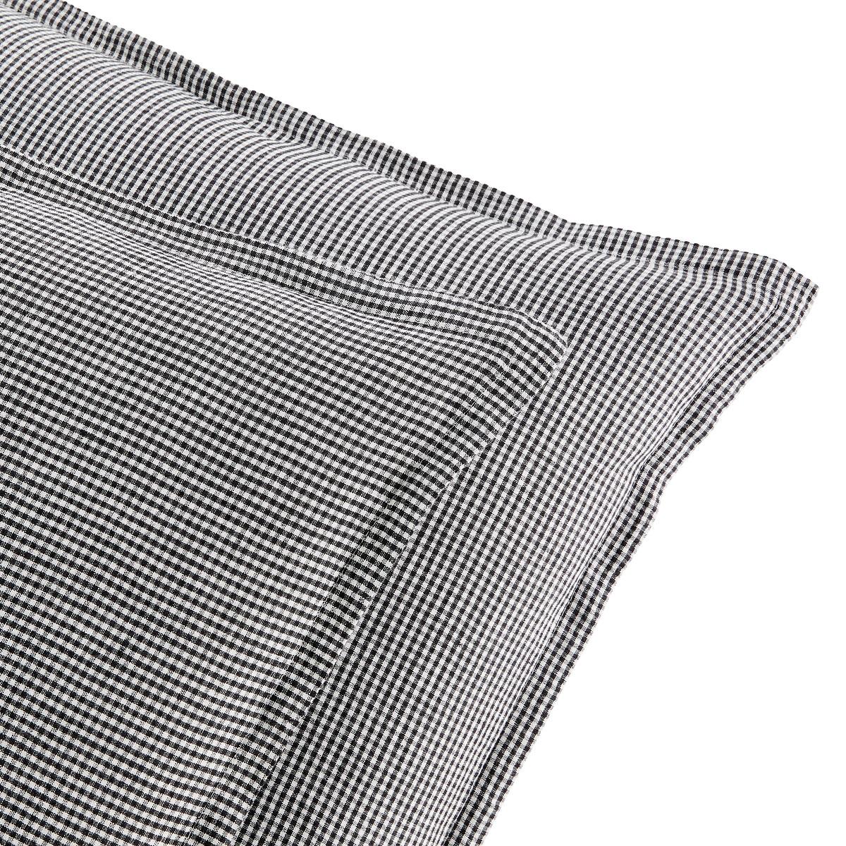 Timeless. A gingham pattern on a washed linen fabric, Linot creates a chic and warm atmosphere. A fresh material in summer and comfortable in winter, washed linen becomes softer and more beautiful with every wash.. Slightly wrinkled, ironing is unnecessary. Product Details • 100% linen • Gingham pattern on both sides. Care Advice • Machine washable at 40°CDimensions • 50 x 70cm: Rectangular • 63 x 63cm: Square • Made in Europe. • OEKO-TEX® Standard 100. Standard 100 certification by OEKO-TEX® tests textile products for harmful substances via an independent, international label.