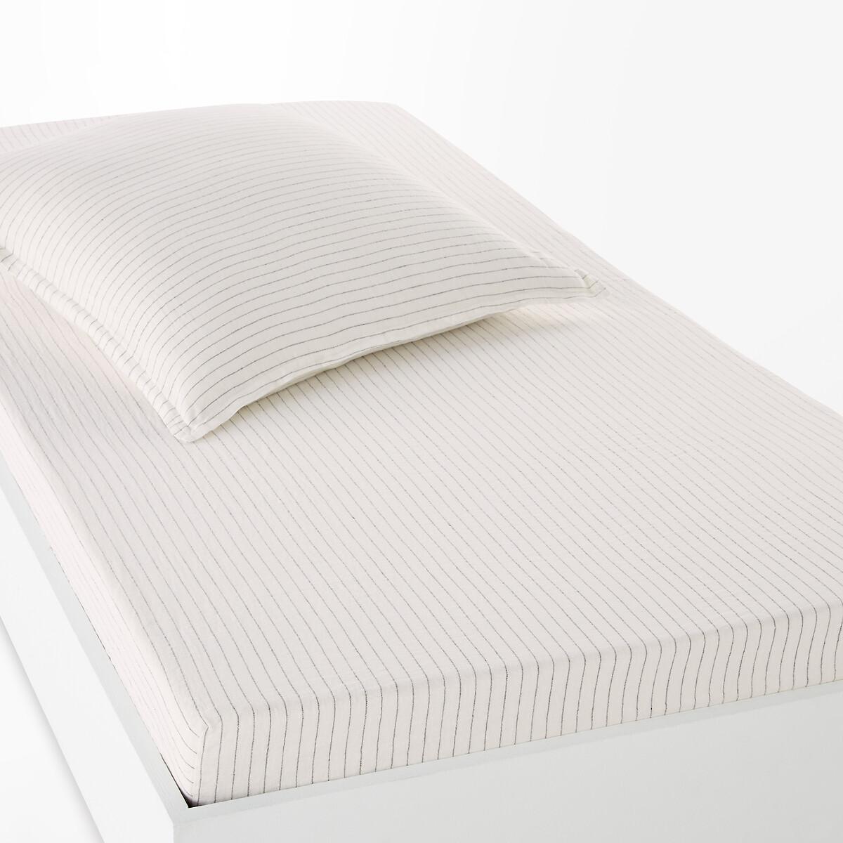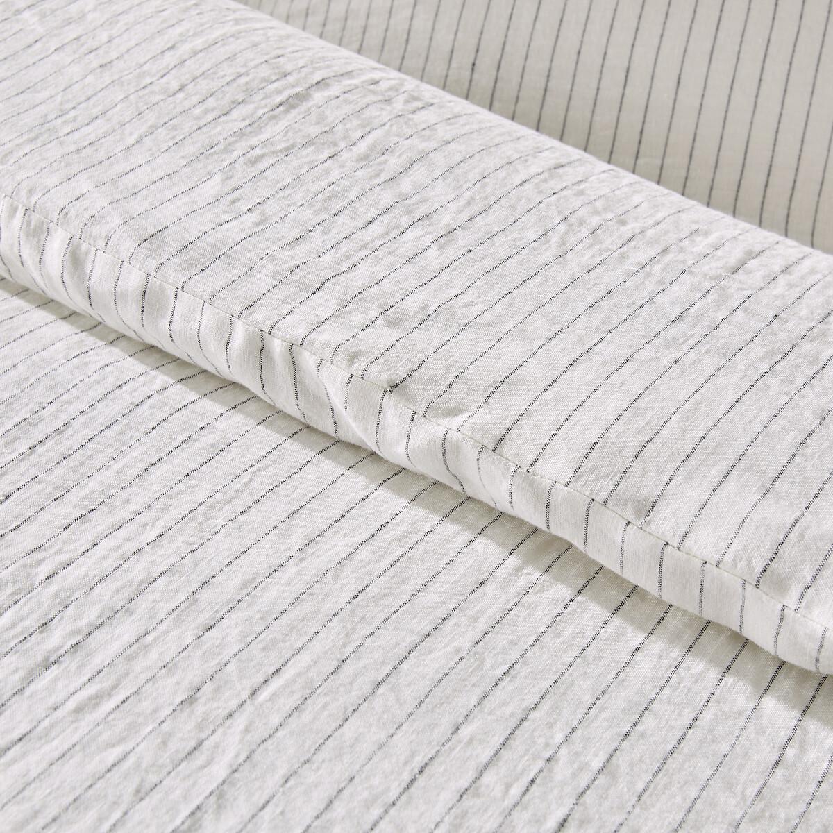 Timeless. Fine stripes on a washed linen fabric, Linot creates a subtle and warm atmosphere. A fresh material in summer and comfortable in winter, washed linen becomes softer and more beautiful with every wash.. Slightly wrinkled, ironing is unnecessary. Product Details • 100% linen • Flap height 30cm for thick mattresses • Striped print. Care Advice • Machine washable at 40°CSizes • 90 x 190cm: Single • Made in Europe. • OEKO-TEX® Standard 100. Standard 100 certification by OEKO-TEX® tests textile products for harmful substances via an independent, international label.