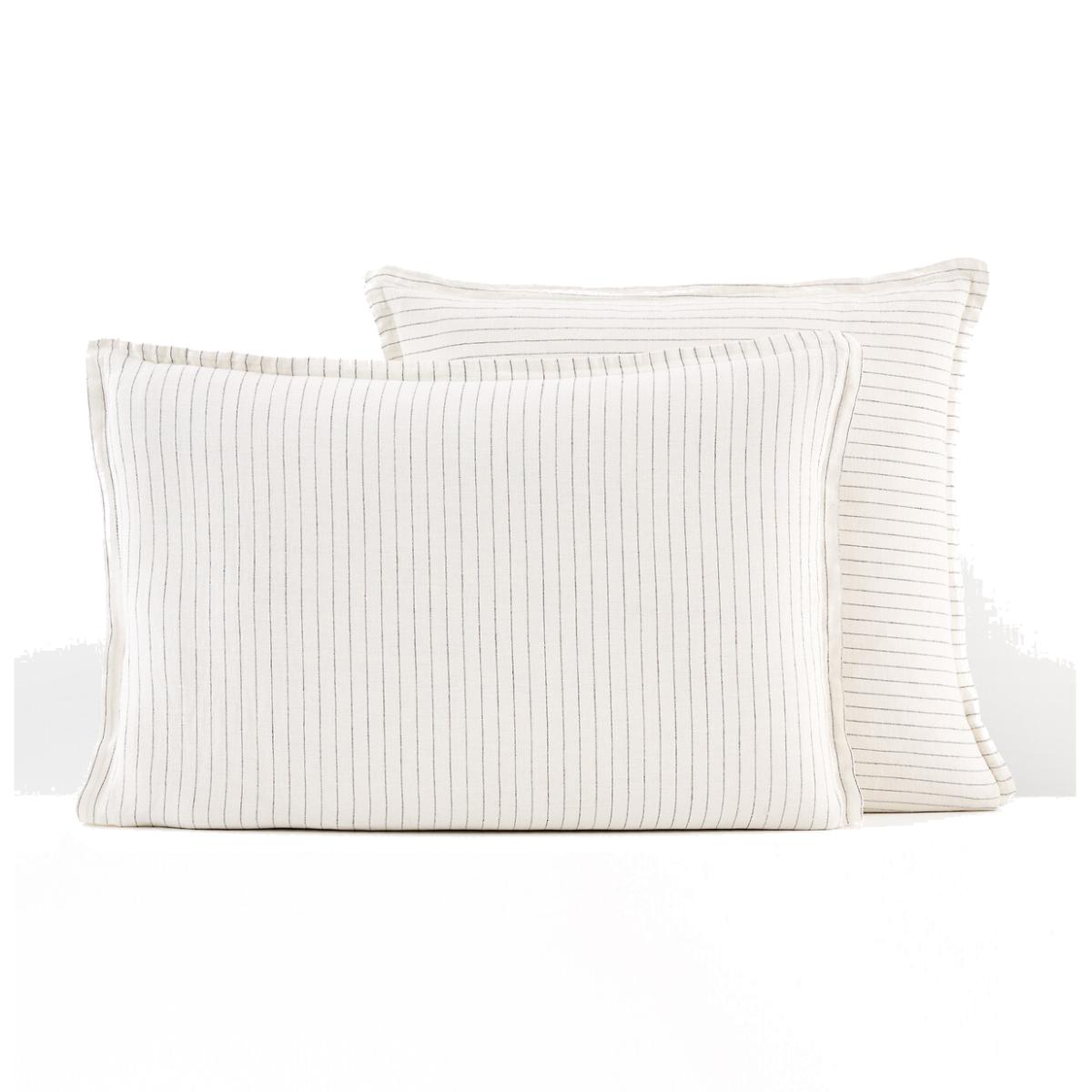 Timeless. Fine stripes on a washed linen fabric, Linot creates a subtle and warm atmosphere. A fresh material in summer and comfortable in winter, washed linen becomes softer and more beautiful with every wash.. Slightly wrinkled, ironing is unnecessary. Product Details • 100% linen • Stripe print on both sides. Care Advice • Machine washable at 40°CSizes • 50 x 70cm: Rectangular • 63 x 63cm: Square • Made in Europe. • OEKO-TEX® Standard 100. Standard 100 certification by OEKO-TEX® tests textile products for harmful substances via an independent, international label.