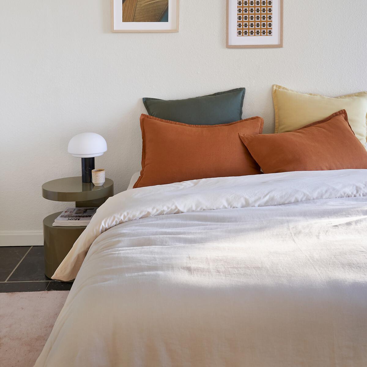 Linot Washed linen bed linen, an exclusive creation signed by our in-house stylists. Fresh material in summer, comfortable in winter, washed linen becomes more beautiful and softer with each wash.. Slightly wrinkled, ironing is unnecessary. Product Details • 100% linen • Slightly wrinkled, ironing is unnecessary. Care Advice • Machine washable at 40°CDimensions • 50 x 70cm: Rectangular pillowcase • 63 x 63cm: Square pillowcase • 85 x 185cm: Bolster case. Diameter: 42.5cm (circumference : 85cm) x Length : 185cm • OEKO-TEX® Standard 100. Standard 100 certification by OEKO-TEX® tests textile products for harmful substances via an independent, international label.