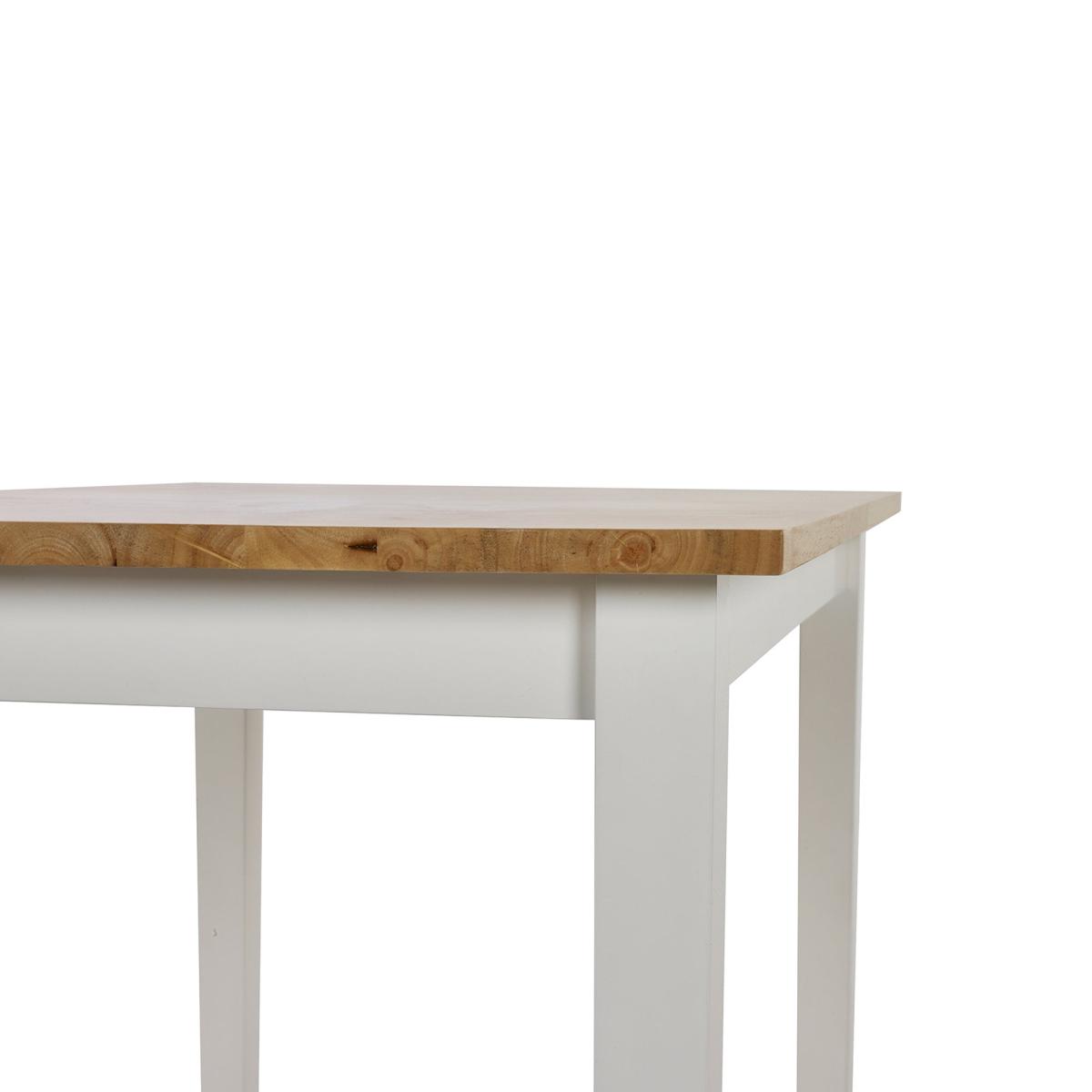 * Natural oak finish* White legs* Seats up to 4 people Enhance the charm of your dining area with this dining table, a beautifully crafted piece that combines rustic allure with contemporary design. Featuring a natural light oak effect table top and stunning white bench legs, this bench exudes warmth and elegance. Matching benches are also available.