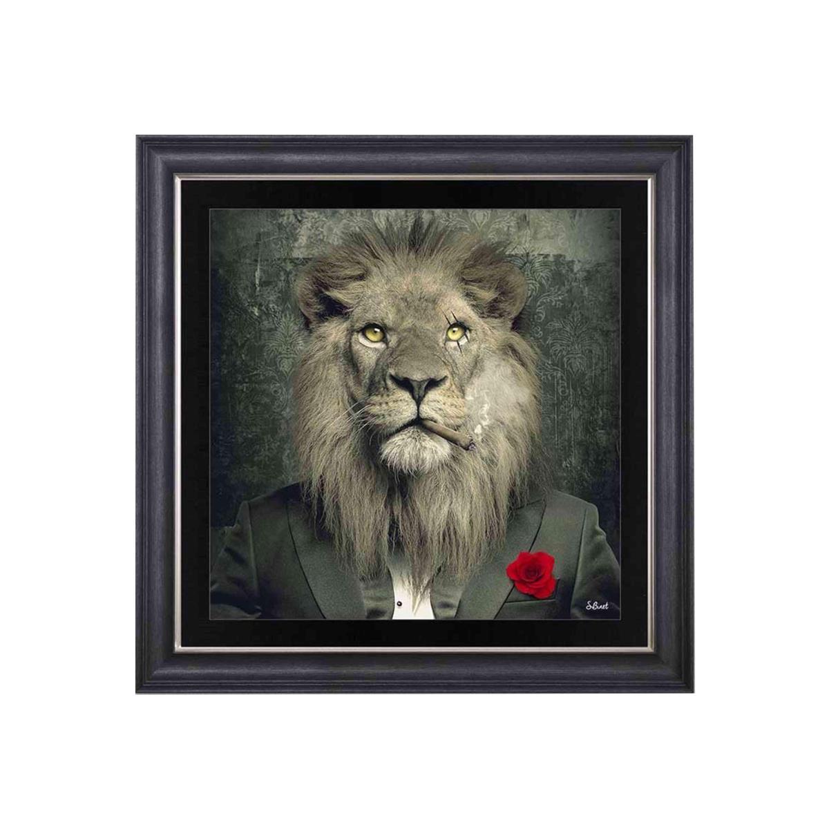 Start a conversation with this striking Lion Mafia Art piece and bring the spirit of the king of the jungle into your lounge or living space. Why you'll love it. Majestic and bold artwork. Luxuriously enclosed in a metallic frame. Made in the UK. What you need to know. A paper print on an MDF back board. Hand embellished original piece. Dimensions. Height: 90cm (36 in). Width: 90cm (36 in).