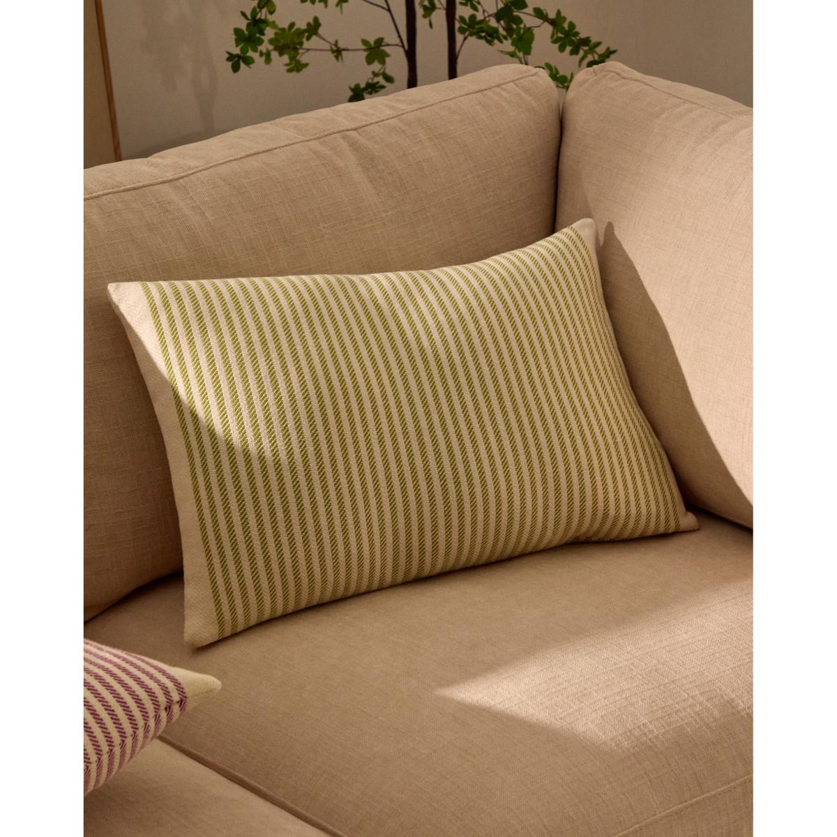 This green striped cotton cushion cover is ideal for adding freshness and harmony to your decoration. Its simple and versatile design adapts to any style, making it the perfect accessory to enhance sofas, armchairs or beds with a touch of colour and elegance.