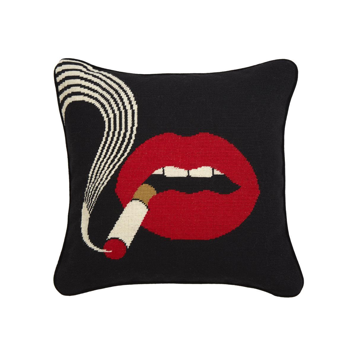 Sexy, attractive, scandalous and cheeky, this cushion represents a sensual mouth smoking a cigarette. This cushion, with its corrosive humour, captures the subversive spirit of famous American designer Jonathan Adler. This woollen cushion is hand-embroidered in cross-stitch. This traditional embroidery technique evokes an antiquated world that contrasts with the quirky pattern. Inspired by hyperrealism and Pop Art, this sensual mouth is loaded with great emotional force. You’ll immediately recognise the inimitable style of American Jonathan Adler. His refined, kaleidoscopic world is inspired by pop culture, American modernism, the origins of hip-hop, contemporary art and fashion. Ceramicist, designer and internationally renowned interior designer, Jonathan Adler first became passionate about terracotta and exhibited his first pottery collection at Barneys in New York in 1993. "Earth is the basis of my work and will always be" affirms Jonathan Adler. For each ceramic piece from the collection, a prototype is made by hand in Jonathan Adler's workshop located in the achingly hip So Ho neighbourhood of New York.