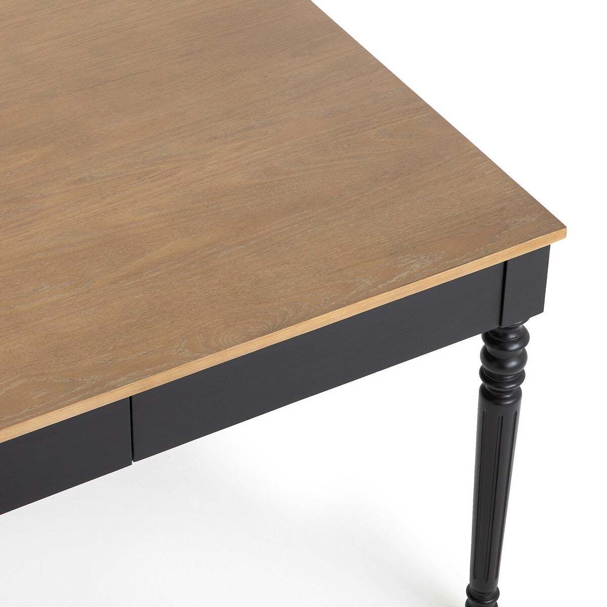 I love this table for its versatile blend of classic detail and practical size. It works well in both traditional and contemporary interiors, especially in spaces where you want a statement piece that doesn’t overpower. The black legs add a touch of sophistication, allowing you to experiment with different colour palettes for your chairs and accessories. For styling, consider pairing it with upholstered or wooden chairs for a balanced look, and keep tableware minimal for a modern vibe. To enhance its aesthetic, add a runner down the centre or a central pendant overhead to create a focal point. This table’s size and shape make it ideal for hosting family dinners, yet it also invites a casual, lived-in feel with a few well-chosen accessories.