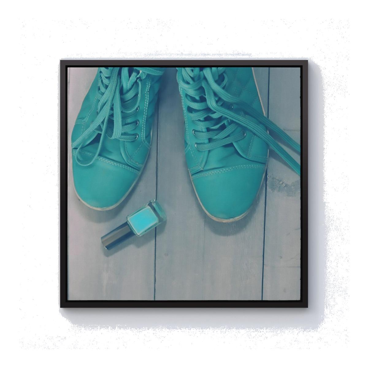 Lipstick Shoes Canvas Print - Blue / 101.6cm / Black Frame