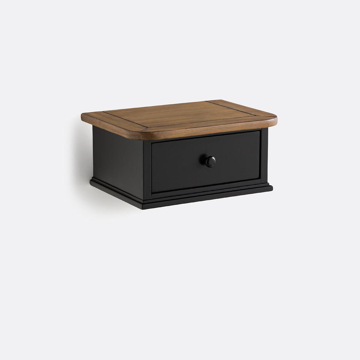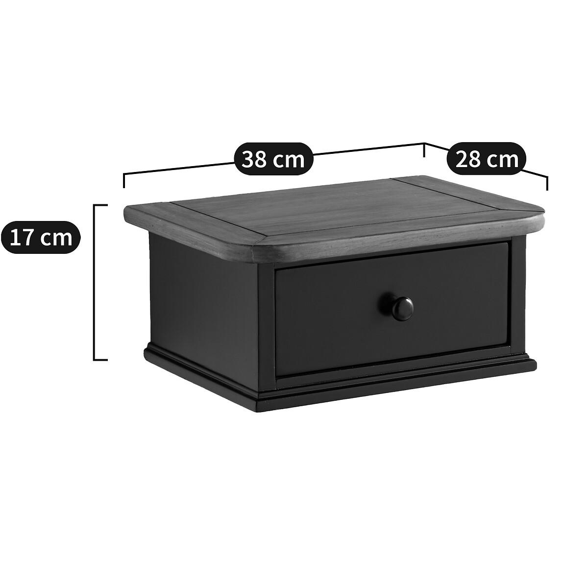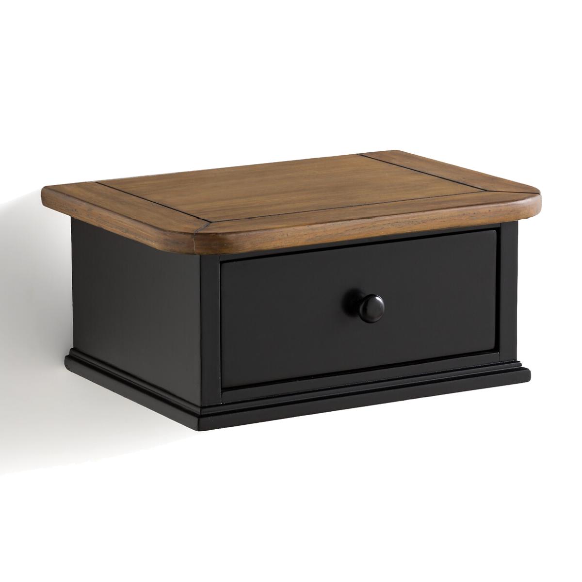Lipstick wall-mounted bedside table. A beautifully crafted, typically French design : The Lipstick bedside table is wall-mounted and combines elegance with a very practical drawer. Product Details • 1 drawer • Pine and black-lacquerd MDF, nitrocellulose varnish finish • Dark oak-stained, brushed pine shelf • Fixes to the wall Dimensions • Length: 38cm • Height: 17cm • Depth: 28cm • Dimensions. inner drawer space : L26 x H8 x D15.5cmDelivery:. Sold pre-assembled. It will be delivered to your door. Note! Please check that all access points are large enough to accommodate your delivery (doors, stairs, lifts).Parcel dimensions and weight:1 parcel • L44 x H23 x D34cm • 6kg