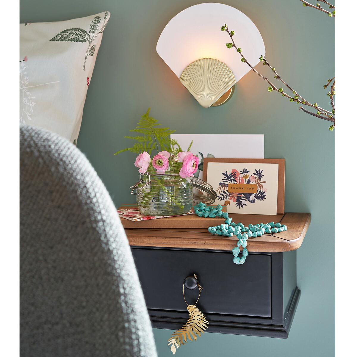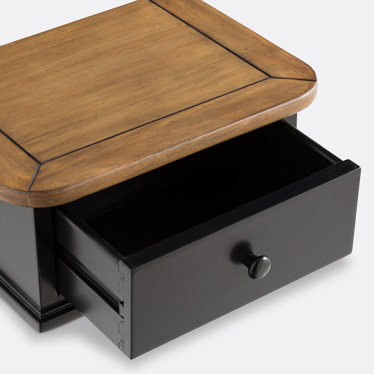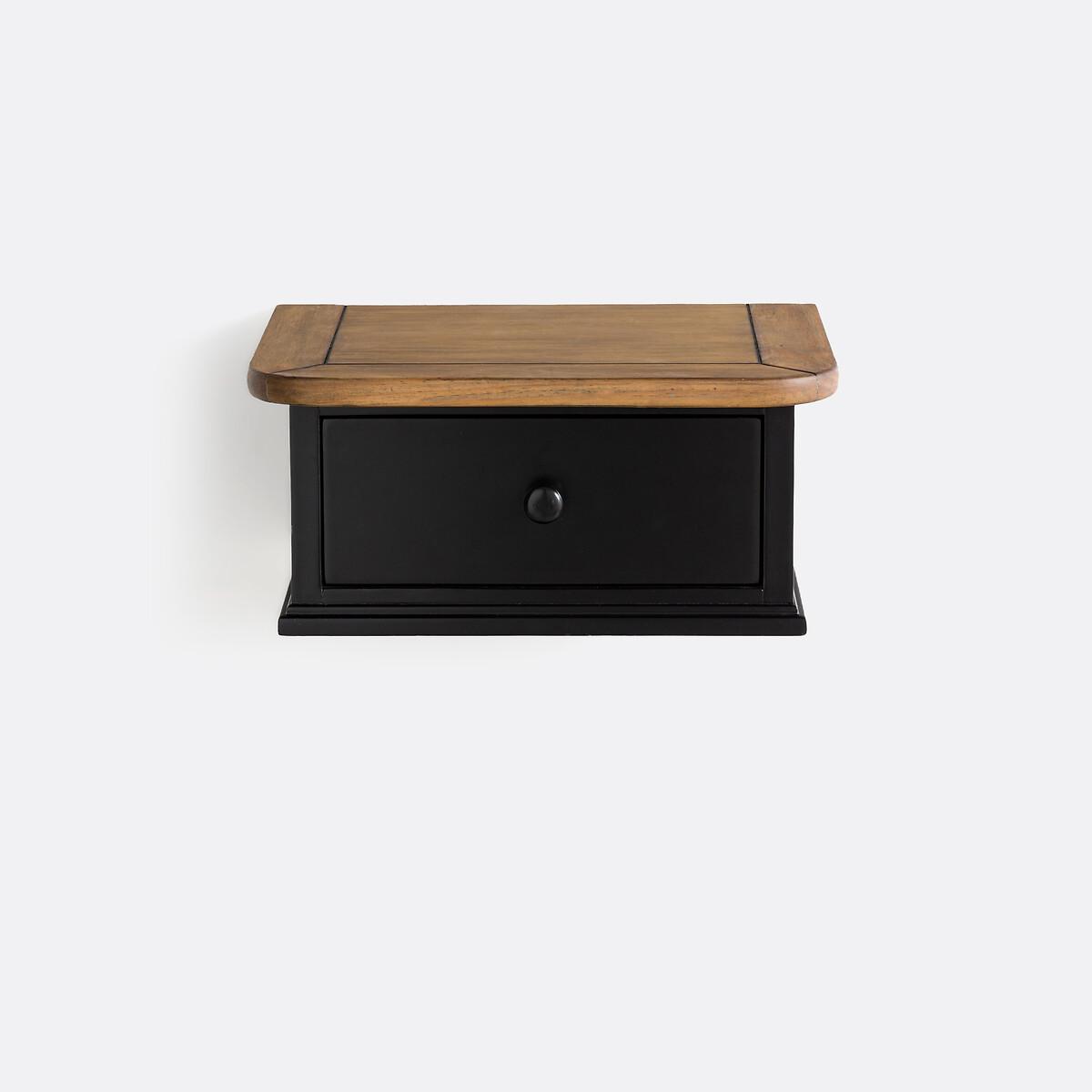 Lipstick wall-mounted bedside table. A beautifully crafted, typically French design : The Lipstick bedside table is wall-mounted and combines elegance with a very practical drawer. Product Details • 1 drawer • Pine and black-lacquerd MDF, nitrocellulose varnish finish • Dark oak-stained, brushed pine shelf • Fixes to the wall Dimensions • Length: 38cm • Height: 17cm • Depth: 28cm • Dimensions. inner drawer space : L26 x H8 x D15.5cmDelivery:. Sold pre-assembled. It will be delivered to your door. Note! Please check that all access points are large enough to accommodate your delivery (doors, stairs, lifts).Parcel dimensions and weight:1 parcel • L44 x H23 x D34cm • 6kg