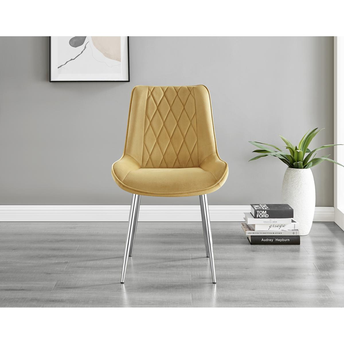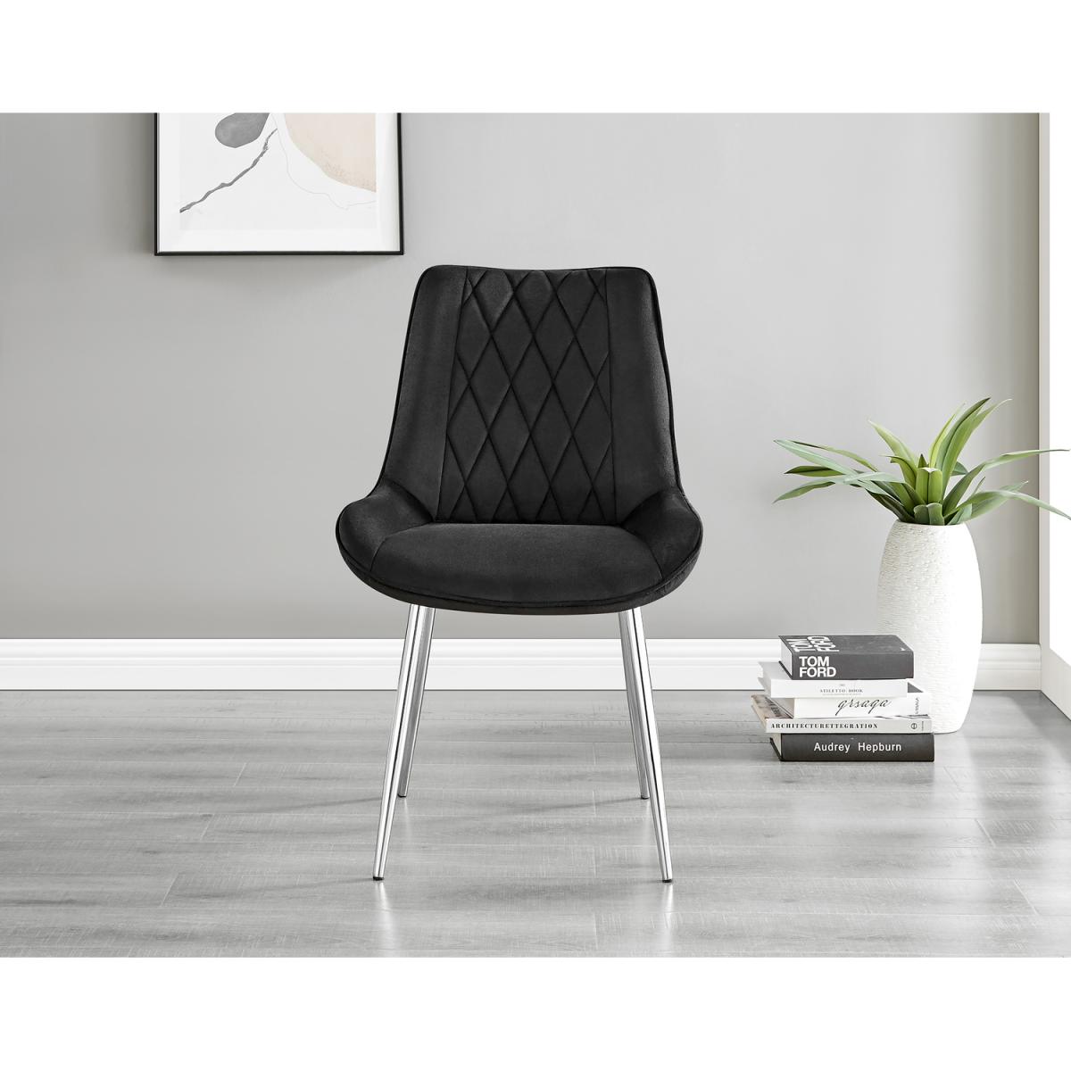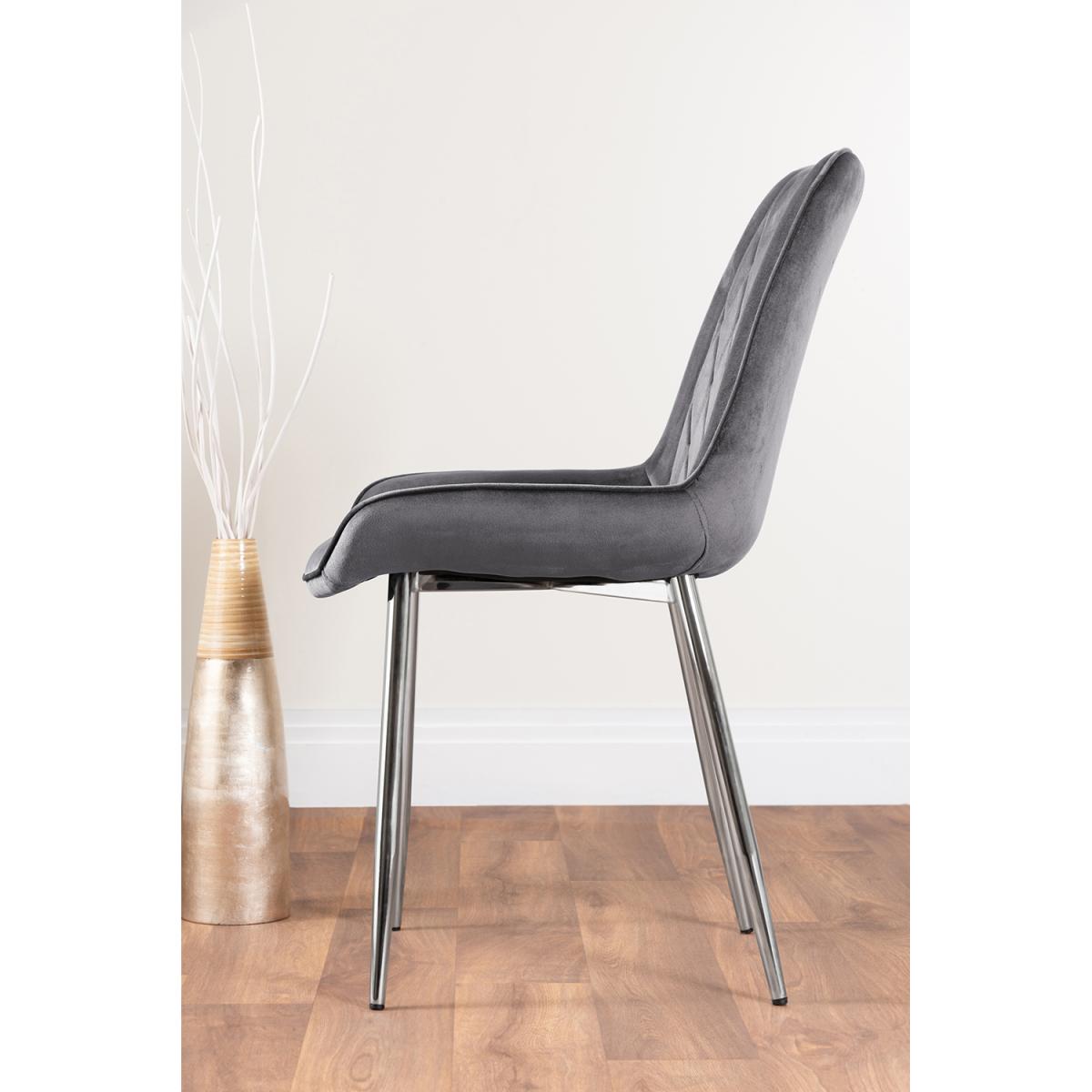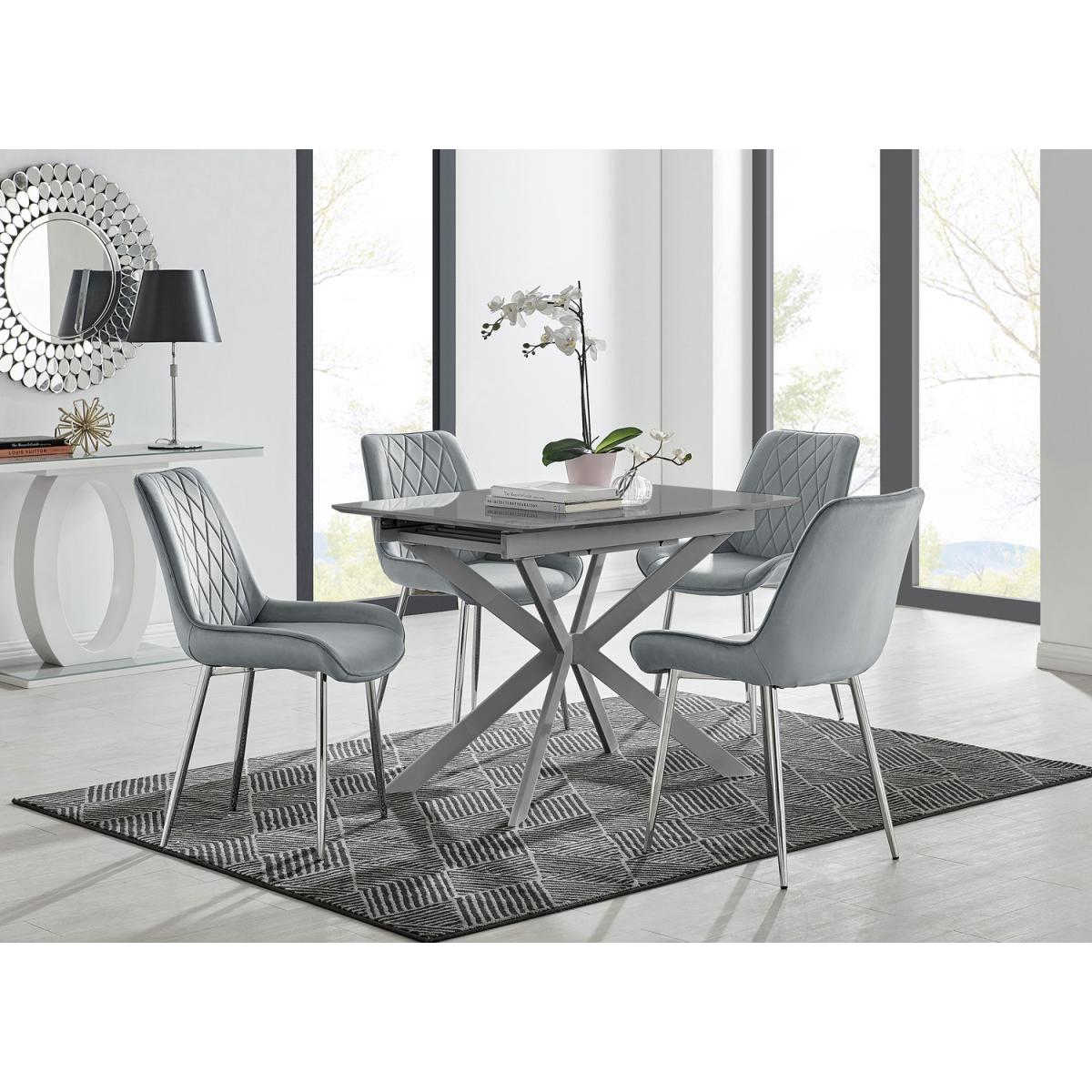 The Lira table is the perfect solution for the adaptable modern home. Extending effortlessly from 100cms to 140cms and with a family-friendly wipe-clean high gloss surface, you'll be hard-pressed to find a more stylish and versatile dining table. The four grey burst legs add an element of luxury and are cleverly positioned to accommodate the extending element for extra chairs. The table-top separates on a smooth sliding mechanism with the extension piece concealed under the top, lifting out easily to unfold and create the additional length in the extended table. Modernise your dining area with our luxurious velvet upholstered Pesaro Dining Chairs. With a nod to the Mid-century modern design era, the Pesaro features gorgeous textured diamond stitching with an ergonomically designed curved seat pad blending seamlessly to the supporting medium high back rest. Sat atop elegant slightly tapered legs in black, chrome or gold effect. The Pesaro is a perfect match to any dining table or use as a luxe vanity seat in the bedroom, as an occasional chair for the living area or to add a bit of luxury to your home office.