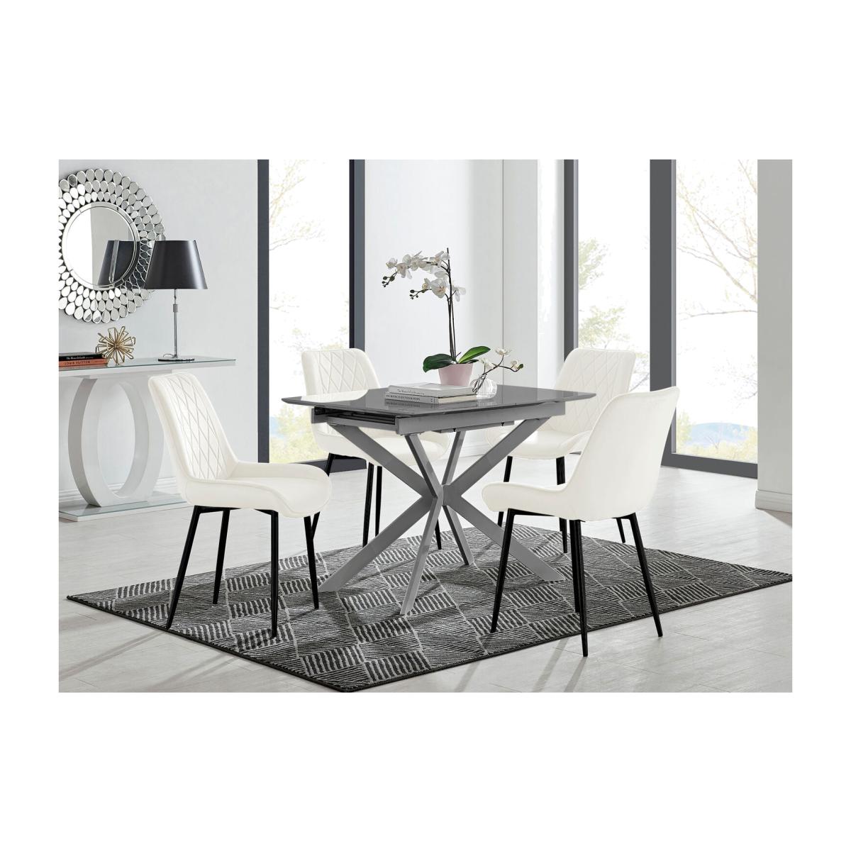 Lira 120cm Grey Metal Extending Dining Table and 4 Pesaro Black Leg Chairs - Cream