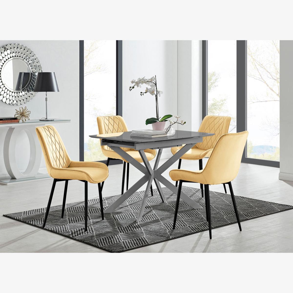 Lira 120cm Grey Metal Extending Dining Table and 4 Pesaro Black Leg Chairs - Mustard